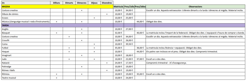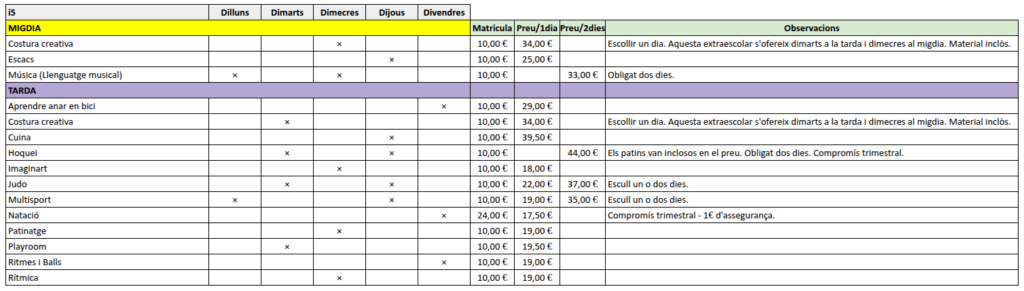 ACTIVITATS EXTRAESCOLARS CURS 2025-2026