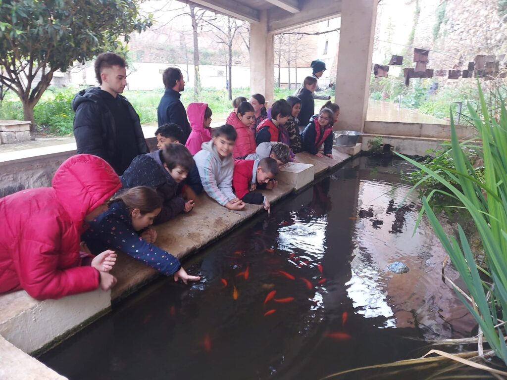 A continuació van fer una visita a les sales del Museu on observaven i descobrien curiositats sobre com s’utilitzava l’aigua en altres èpoques. També van poder rentar uns mocadors en un rentador, que estava ple de peixos, tal com es feia abans i beure aigua a galet en un càntir.