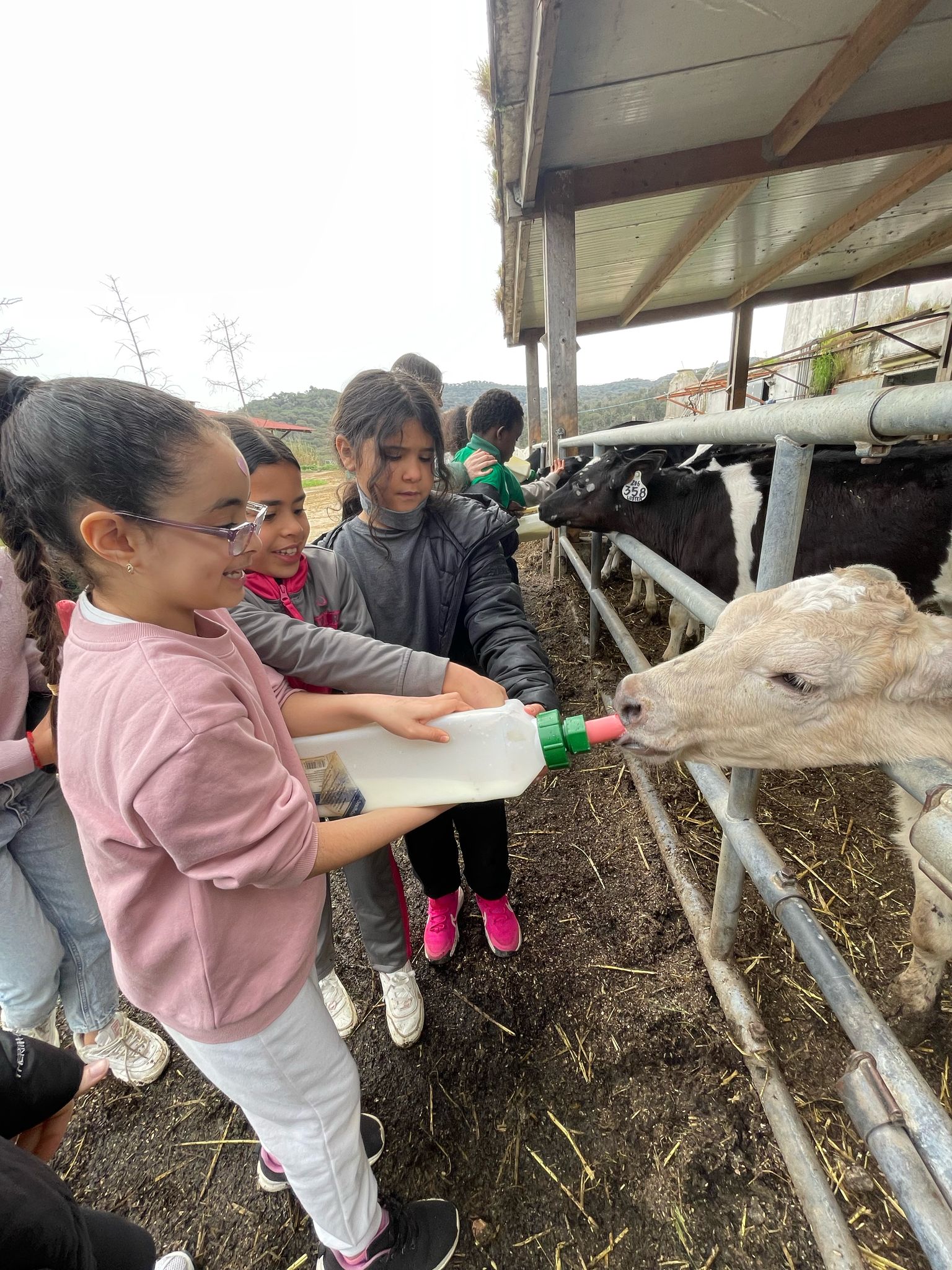 La setmana passada els alumnes de 3r vam anar a la Granja de Can Gel, on vam tenir l’oportunitat de veure de prop molts animals. Vam alimentar les vaques, començant per les més grans fins a les més petites. A més, vam observar altres animals com ovelles, cabres, conills, cavalls i gallines. Va ser una experiència molt enriquidora, i vam gaudir molt de l’entorn natural de la granja, aprenent i passant-ho genial amb els companys.