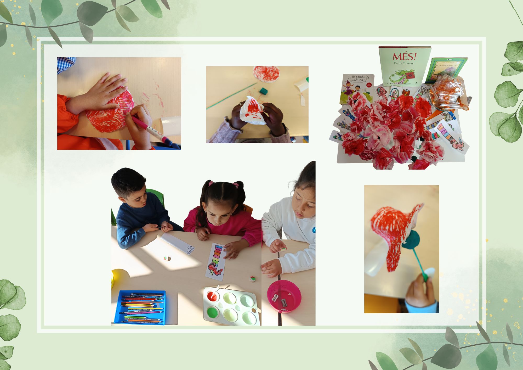 També hem fet tallers de manualitats relacionats amb la llegenda de Sant Jordi, deixant volar la imaginació i omplint l’escola de dracs, roses i punts de llibre ben originals.