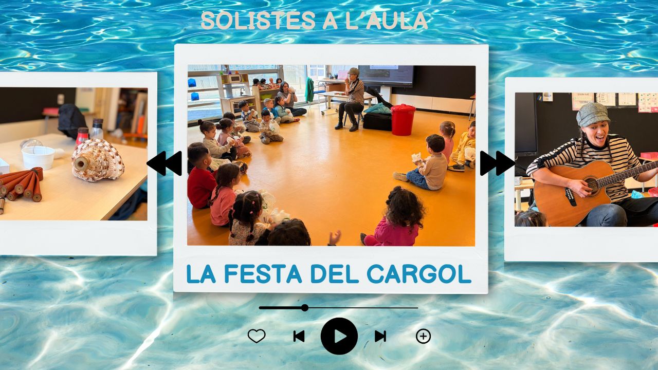 A través d’una història explicada per una narradora, hem seguit l’aventura d’un cargol de mar mentre anaven apareixent sons com la pluja, el mar o els trons. A cada moment, ens hem convertit en músics, recreant aquests sons amb instruments fet amb materials reciclats.