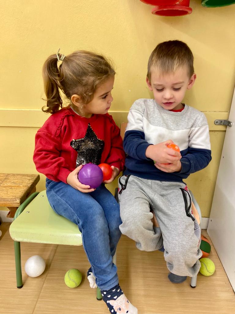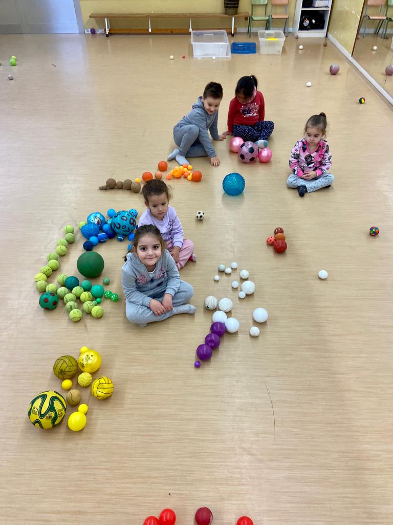 Acabem el trimestre jugant amb pilotes de diverses característiques. Aquesta experiència ens ha permès treballar i diferenciar alguns conceptes (dur-tou, gran-petit) i tipus de classificacions. Hem agrupat les pilotes segons si botaven o no ho feien, per colors, similitud i també per grandària. Ens ho hem passat molt bé fent aquesta proposta!!