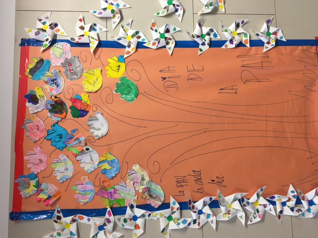 Avui hem acabat de decorar el mural per celebrar el dia de la pau i la no-violència en el què l’alumnat ha estat treballant durant la classe de valors.