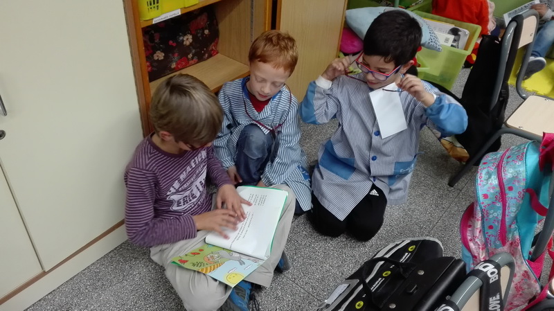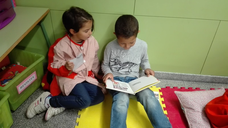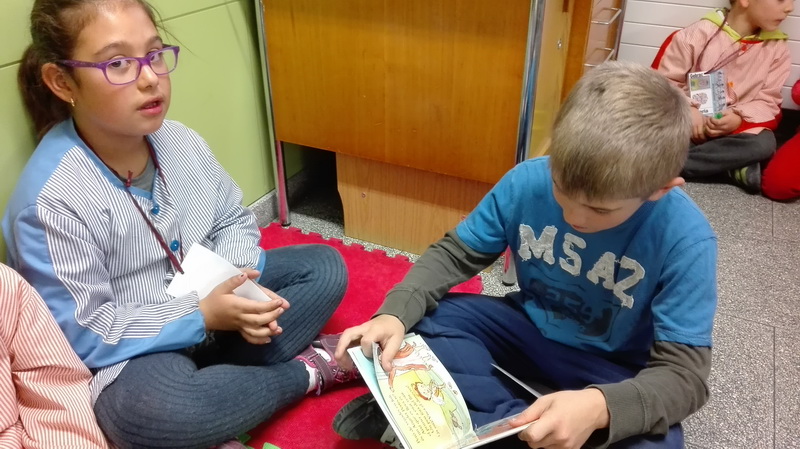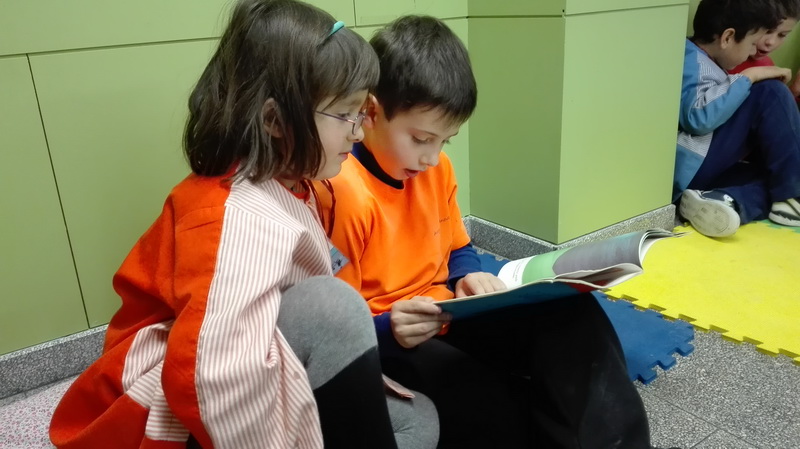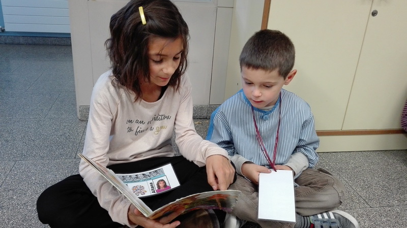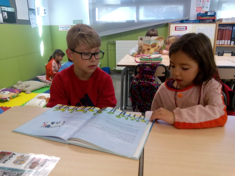 El mes de novembre vam començar l’apadrinament lector. Els nostres padrins són les nenes i els nens de tercer, i ja ens hem trobat perquè ens llegeixin contes.
