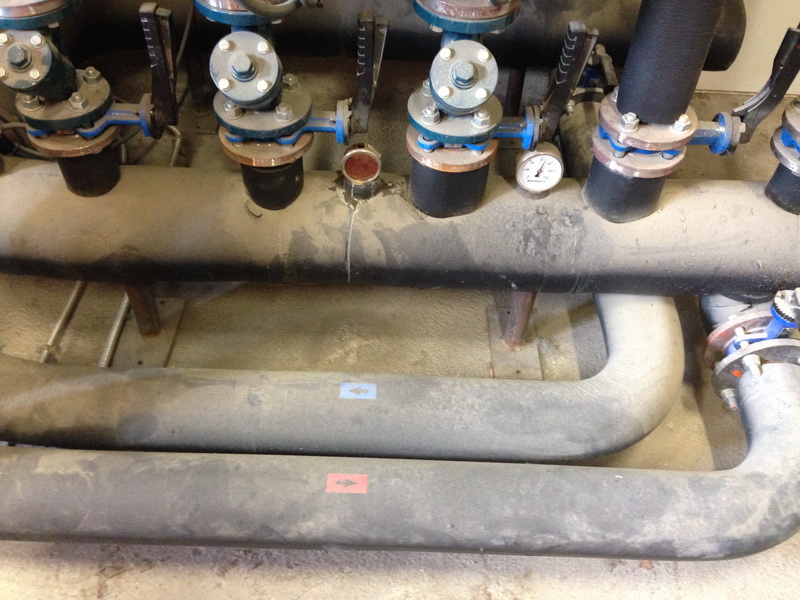 A la caldera hi entra un tub d’aigua freda que s’escalfa i en surt un altre d’aigua calenta. Aquesta aigua va al dipòsit d’expansió i d’aquí és transportada mitjançant bombes per tot el col·legi.