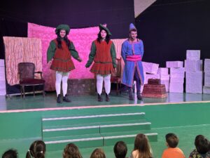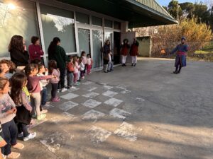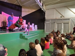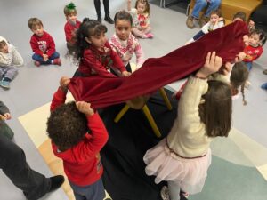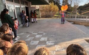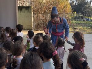 Els darrers dies de trimestre van ser molt especials. Els infants van rebre una visita molt especial: tres patges dels Reis d’Orient ! Va ser una trobada molt especial i sorprenent. Hi havia un patge que sabia treure foc per la boca i tot! Els hi vam recitar el nostre poema dels Petons i vam cantar-los la cançó dels Reis. Ells tenien per a nosaltres unes cartes personalitzades i uns dibuixos que ens vam poder emportar a casa.