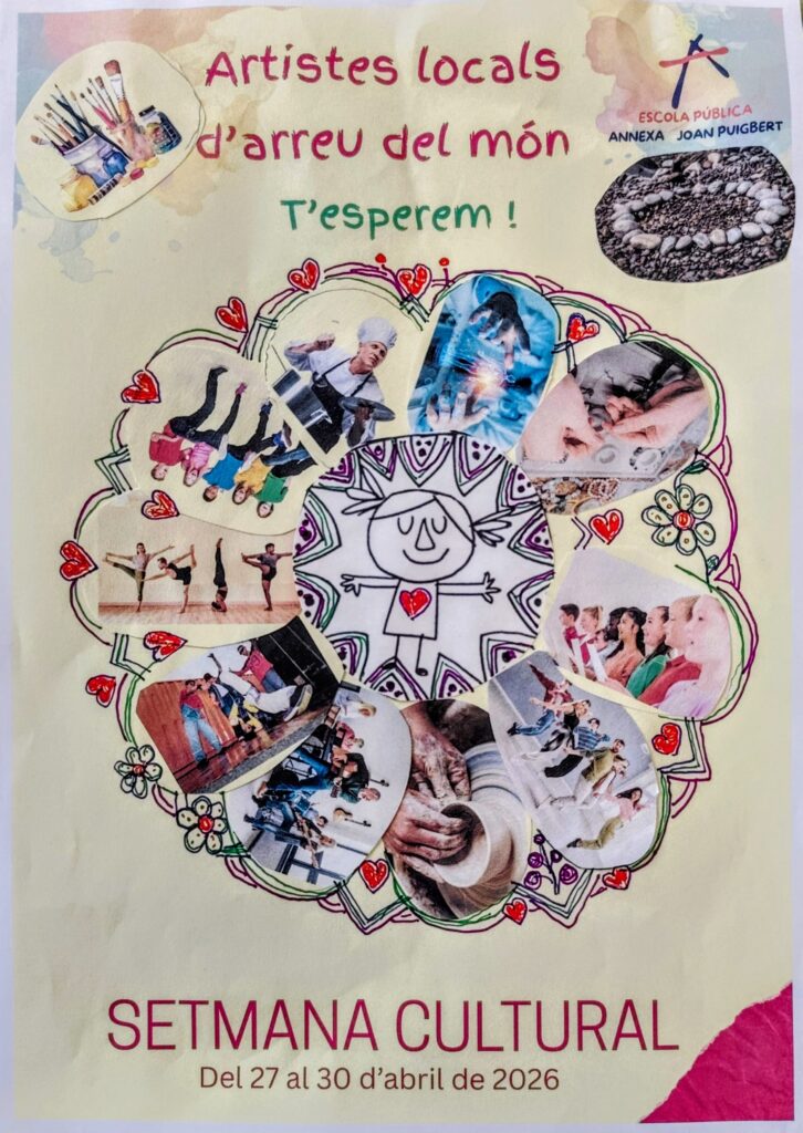 Durant la setmana del 27 al 30 d’abril celebrarem la Setmana Cultural a l’Annexa dedicada a artistes globals i d’arreu del món. Moltes famílies ens han confirmat que vindran a fer tallers i activitats per tot l’alumnat. Tenim moltes ganes de començar i que vingueu a ensenyar-nos coses interessants. Que visqui l’art i els artistes!
