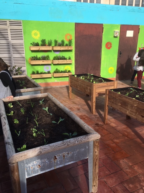 AUTUMN PLANTING We’ve planted again. This year we have new planting tables and a vertical garden that AMPA bought for us. Look how great it looks   We prepared the ground and planted: peas, broccoli, cauliflower, onions, lettuce, chard,  parsley and lettuce. We have also started looking after them