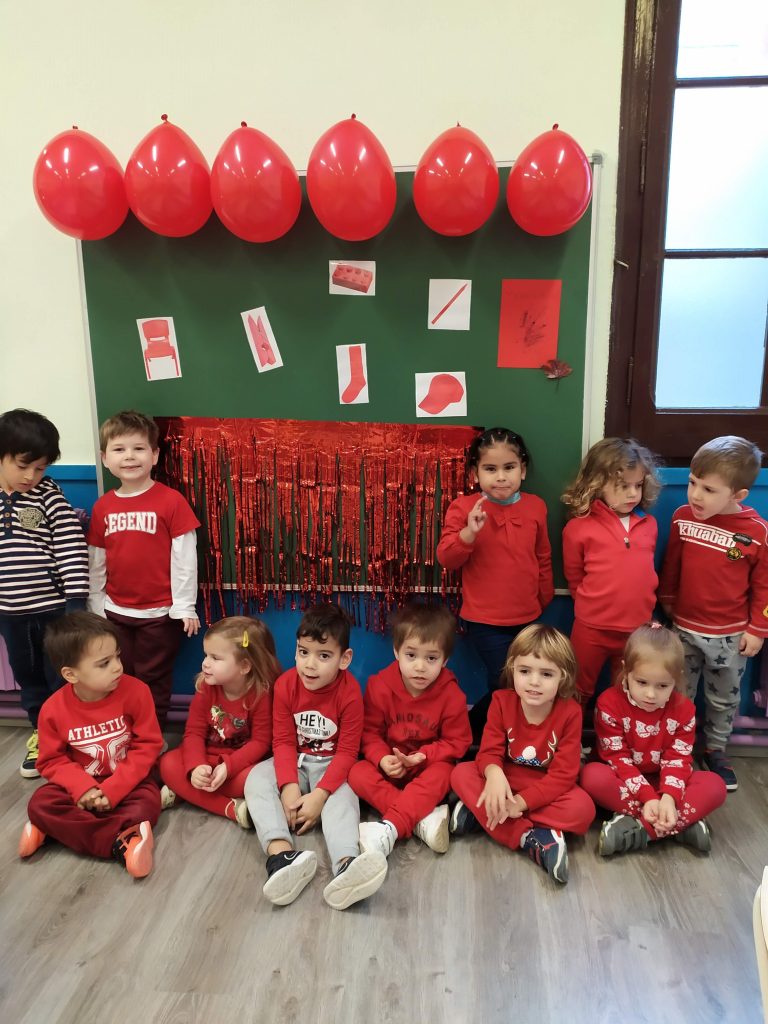 FA UNS DIES ELS NENS I NENES DE P3 VAM FER LA FESTA DEL COLOR VERMELL. TOTS ENS VAM VESTIR AMB ROBA DE COLOR VERMELL  I VAM COMENÇAR FENT UN EXPERIMENT, ENTRE TOTS VAM ACONSEGUIR FER GELATINA DE MADUIXA, LA VAM POSAR A LA NEVERA I A LA TARDA ENS LA VAM MENJAR…ESTAVA MOLT BONA!!