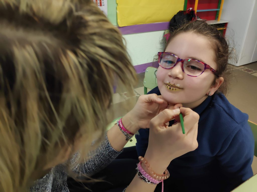 Aquesta setmana hem tingut la nostra primera “Tarda en família”. Com s’acosta el Carnestoltes, hem tingut la Mireia (mare d’un alumne) que ens ha maquillat a tots i a totes! Ens ha agradat molt tenir un familiar dins la classe i poder compartir una estona amb ella, moltes gràcies, us animem a seguir participant!