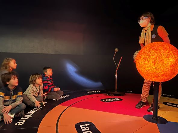 Els nens i nenes de la Classe dels Esquiadors i les Esquiadores de I5 hem anat d’excursió al Cosmocaixa i hem fet l’activitat del Planetari! A l’activitat del Planetari hem après moltes coses sobre el nostre Sistema Solar i dels Planetes que el formen! Hem pogut experimentar mitjançant una maqueta el moviment que origina