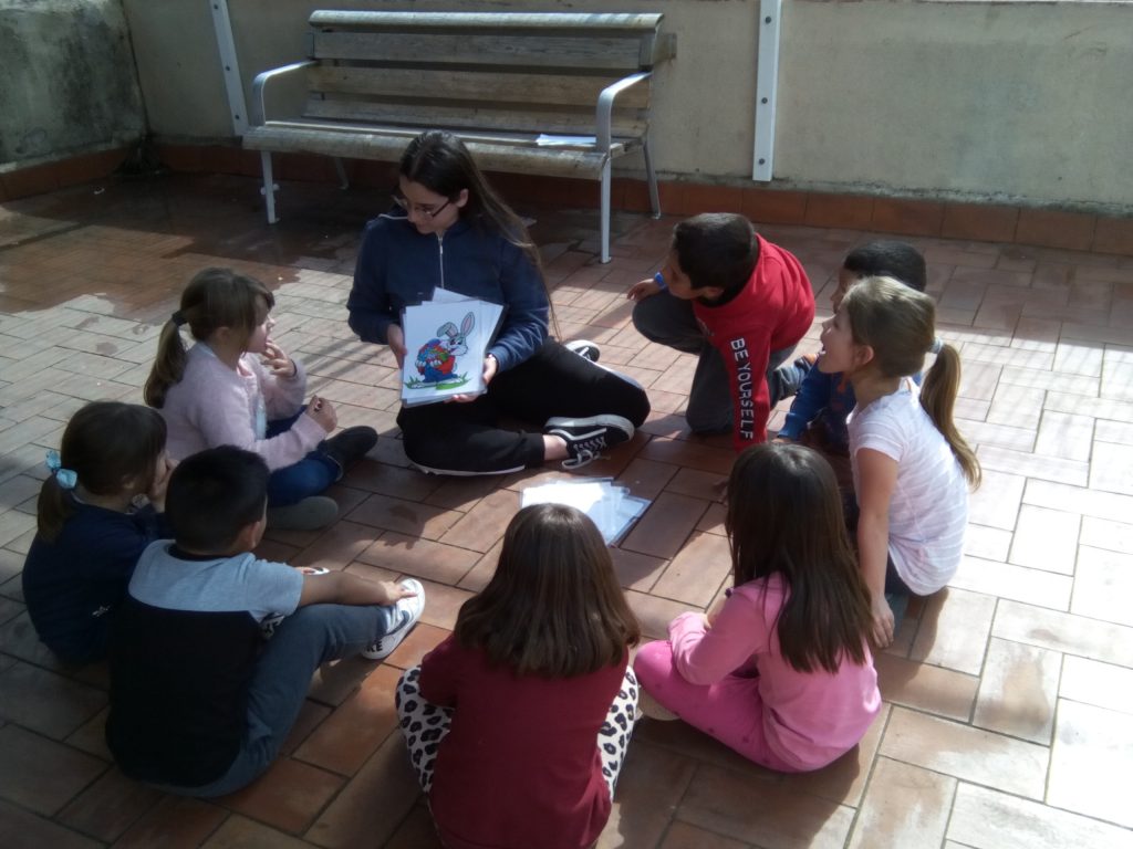 1st level students played Easter games with the help of Raquel, Andrea and Lluna, our language assistants from “Francesc Macià” high school.