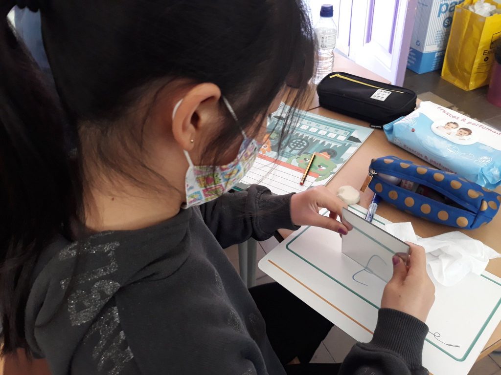 En aquest article, veiem als nois i noies de 4t descobrint els eixos de simetria de l’alfabet tot fent servir miralls.