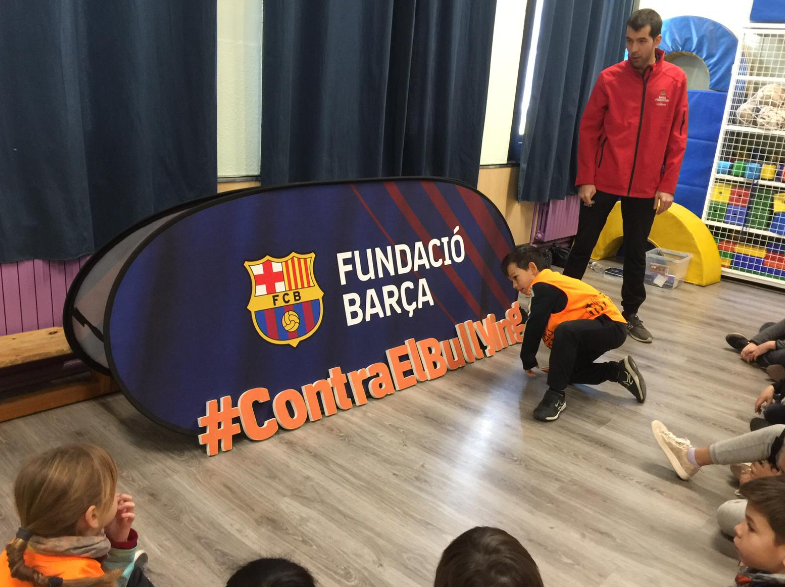 Dijous passat, la Fundació FCB ens va fer una xerrada sobre el bullying. Primer, vam parlar sobre hipotètics casos, fent-los partíceps en com evitar-ho i estratègies per ajudar a nens i nenes que poguessin estar en una situació similar. Tot seguit, van fer jocs al gimnàs i al pati.