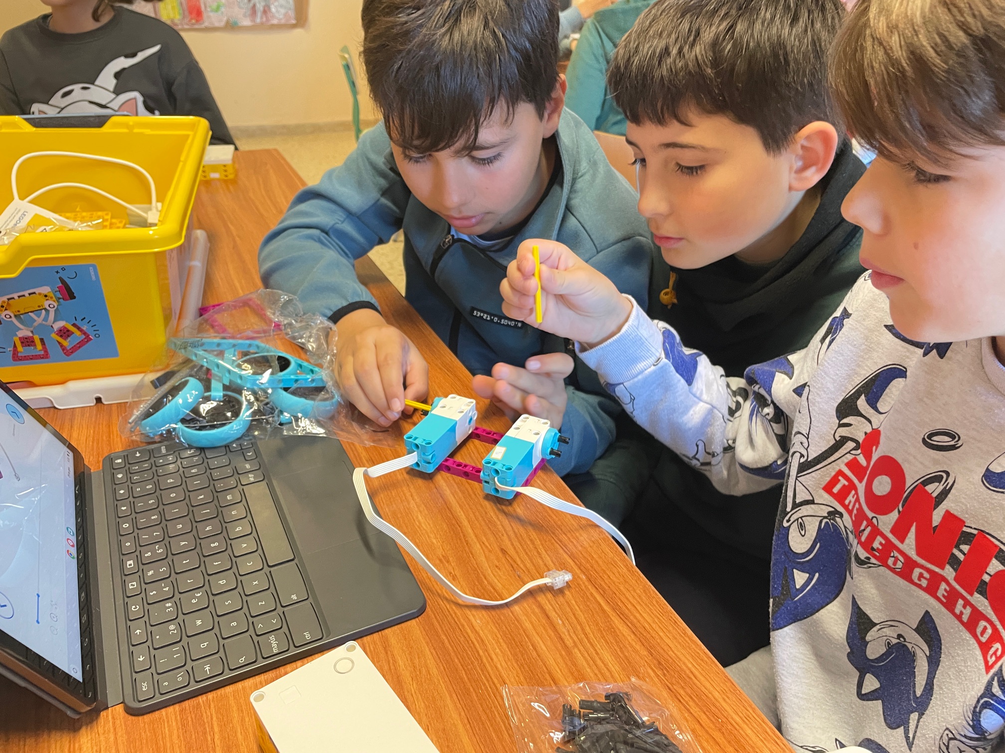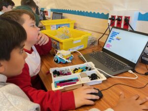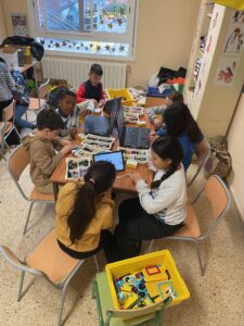 Durant el segon trimestre, els nens i nenes de quart de primària han començat a fer robòtica amb el Lego Education Spike Prime. Aquest material, dissenyat especialment per a ús escolar, permet la construcció de robots i màquines de tota mena.