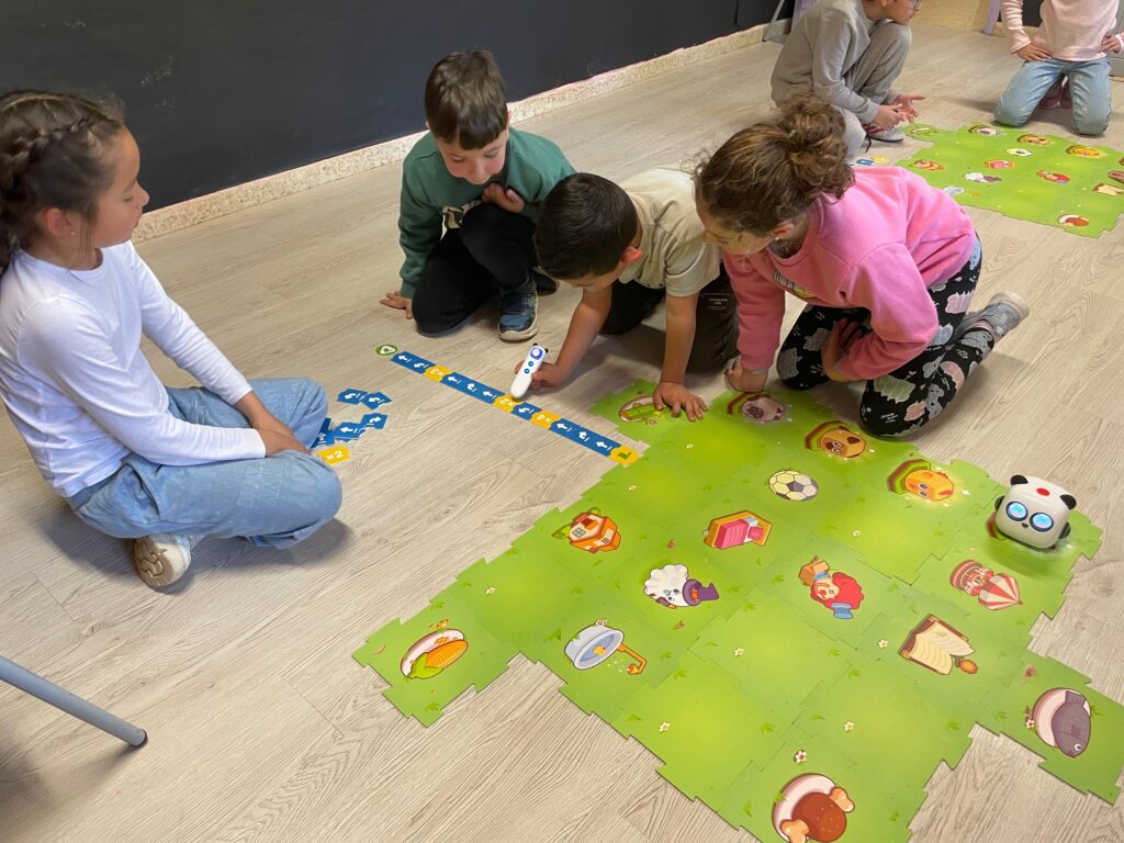 Els reptes són petites missions que es resolen programant al robot perquè vagi d’una casella a una altra. A vegades, els itineraris són tancats, mentre que d’altres són oberts, on els infants han de consensuar el camí a seguir segons els objectius de la missió. Amb l’experiència, cada infant desenvolupa les seves estratègies. Algunes són compartides, mentre que d’altres són genuïnes (no sempre funcionen bé o no són les òptimes). Resolent aquests reptes, aprenen a interpretar les direccions segons el punt de referència (el robot es desplaça segons la seva orientació, no la nostra), el pensament lògic en la creació de seqüències, la identificació d’errades i la seva correcció, l’assaig-error, la simulació, la fragmentació d’un problema en parts més petites, la dreta i l’esquerra, la identificació dels moviments més difícils, etc. I tot això ho aprenen mentre comparteixen, reflexionen, fracassen i tenen èxit, ajuden i reben ajuda, i, sobretot, s’ho passen d’allò més bé!