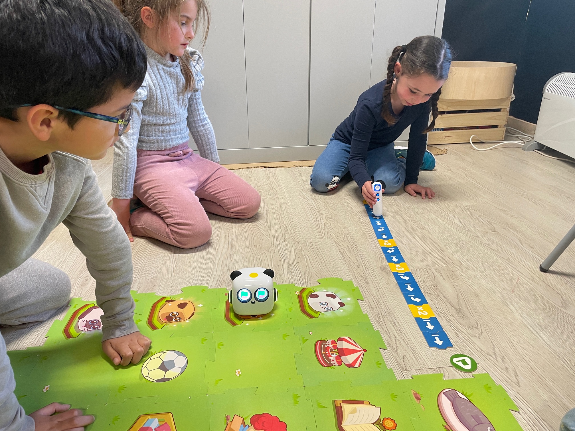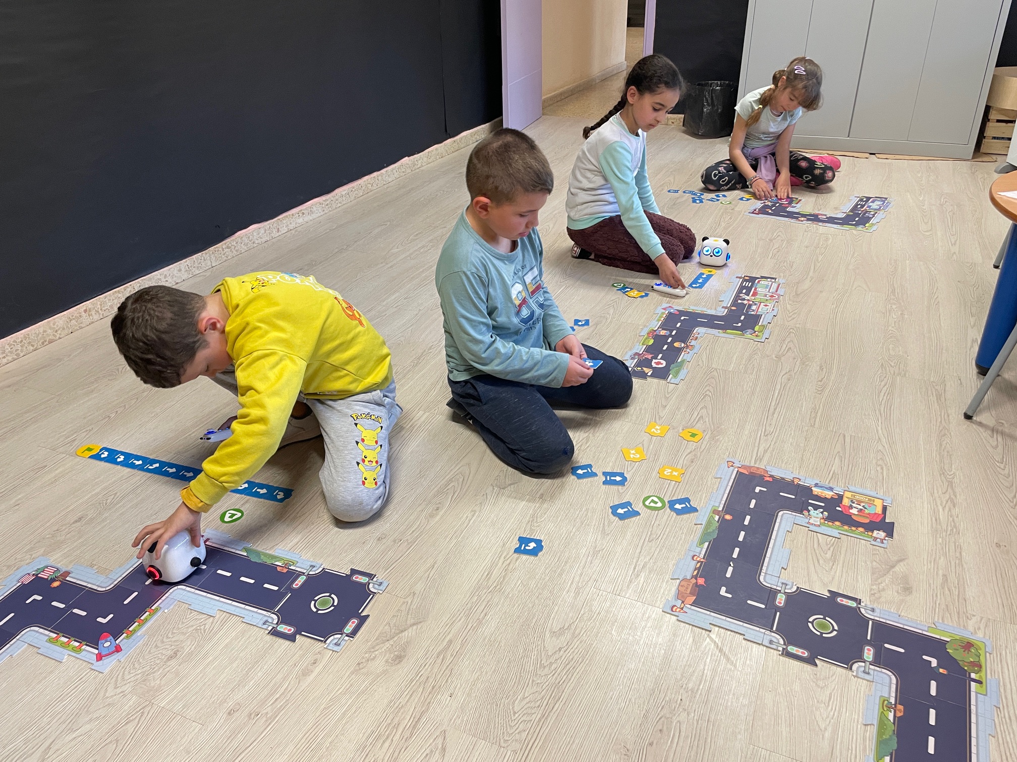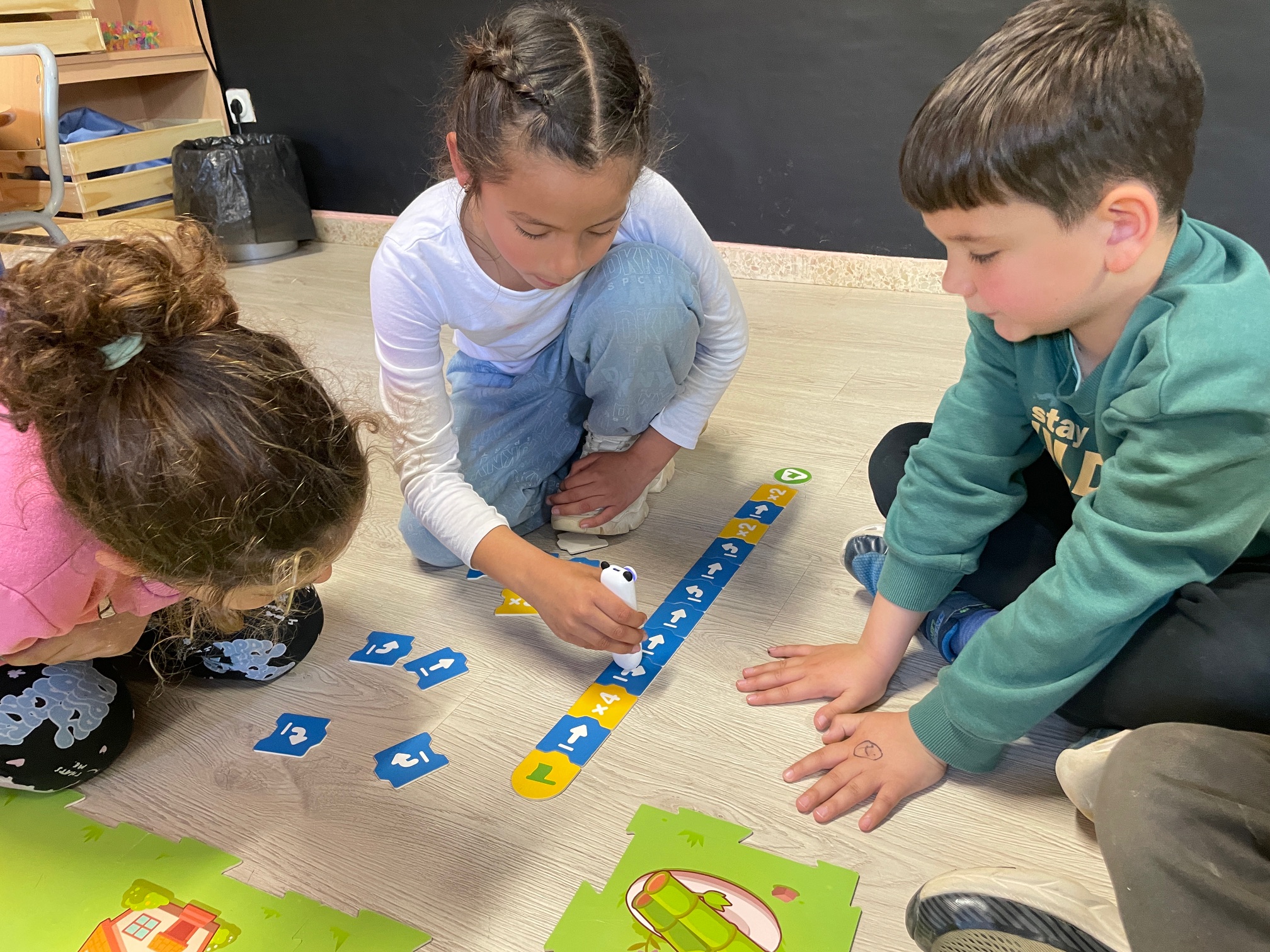 Els reptes són petites missions que es resolen programant al robot perquè vagi d’una casella a una altra. A vegades, els itineraris són tancats, mentre que d’altres són oberts, on els infants han de consensuar el camí a seguir segons els objectius de la missió. Amb l’experiència, cada infant desenvolupa les seves estratègies. Algunes són compartides, mentre que d’altres són genuïnes (no sempre funcionen bé o no són les òptimes). Resolent aquests reptes, aprenen a interpretar les direccions segons el punt de referència (el robot es desplaça segons la seva orientació, no la nostra), el pensament lògic en la creació de seqüències, la identificació d’errades i la seva correcció, l’assaig-error, la simulació, la fragmentació d’un problema en parts més petites, la dreta i l’esquerra, la identificació dels moviments més difícils, etc. I tot això ho aprenen mentre comparteixen, reflexionen, fracassen i tenen èxit, ajuden i reben ajuda, i, sobretot, s’ho passen d’allò més bé!