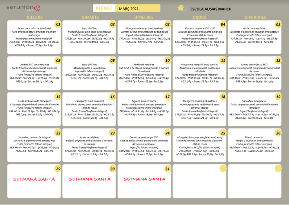 Menús de març