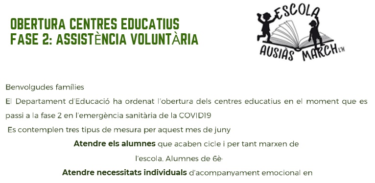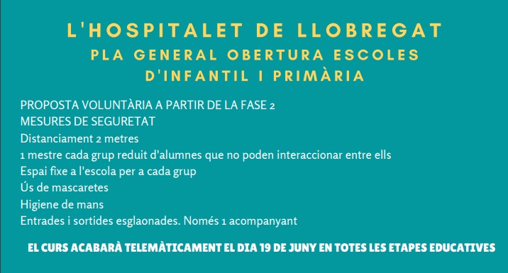 Reobertura de l’escola JUNY’20 Feu un comentari / Per Escola / 3 de juny de 2020 / General Infantil Primària Benvolgudes famílies adjuntem les infografies que us hem fet arribar i el pla d’obertura de l’escola pel dies de juny que entrem en FASE 2.