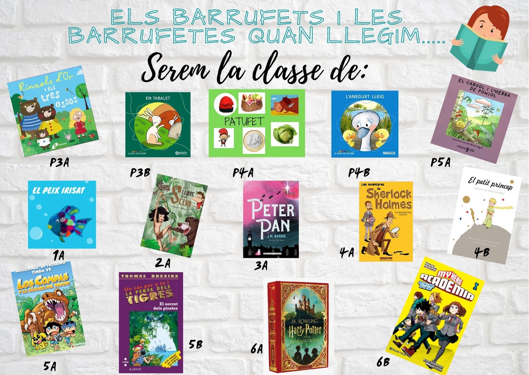 Aquest curs l’alumnat de l’escola treballarem l’eix transversal de la LA LECTURA. A partir d’aquest eix transversal tots els grups classe hem escollit un llibre que representarà la nostra classe durant aquest curs. Aquests són els llibres que hem escollit!