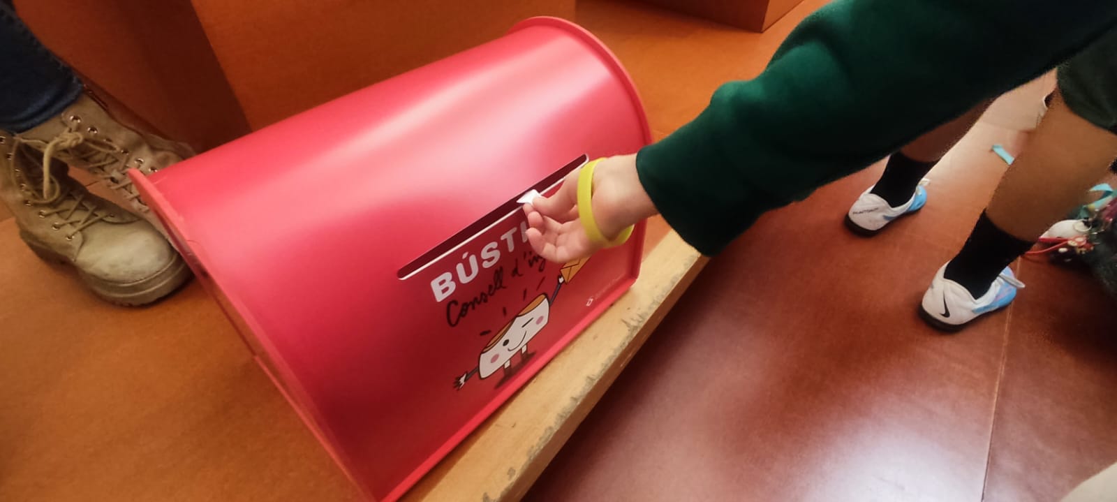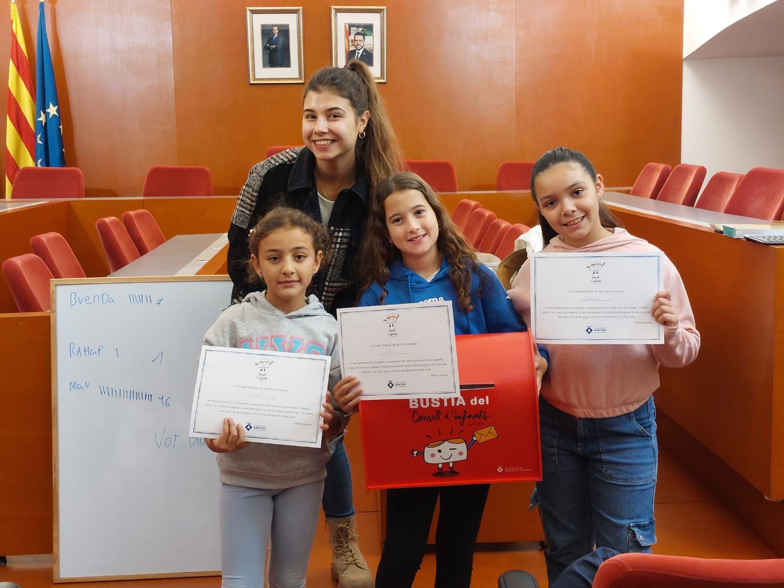 HAVÍEM DE VOTAR, ENTRE TOTS I TOTES, ELS CANDIDATS/ES DEL CONSELL D’INFANTS. ES VAN PRESENTAR TRES COMPANYES: LA MAR, LA BRENDA, I LA RAHAF.