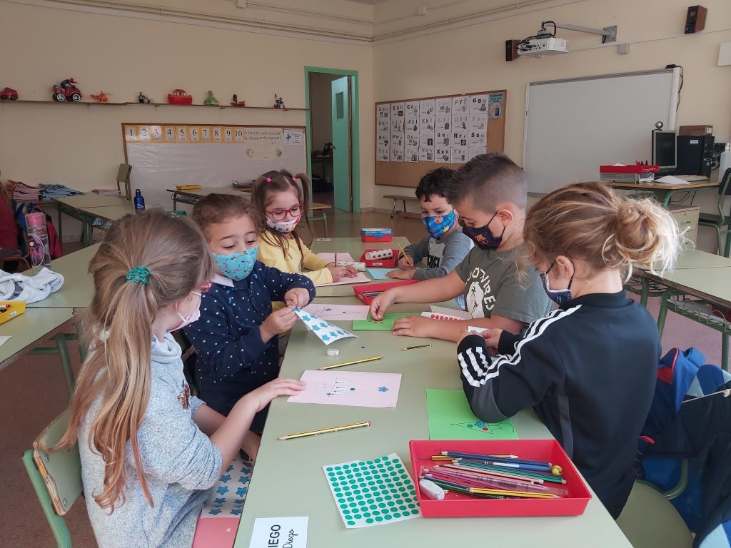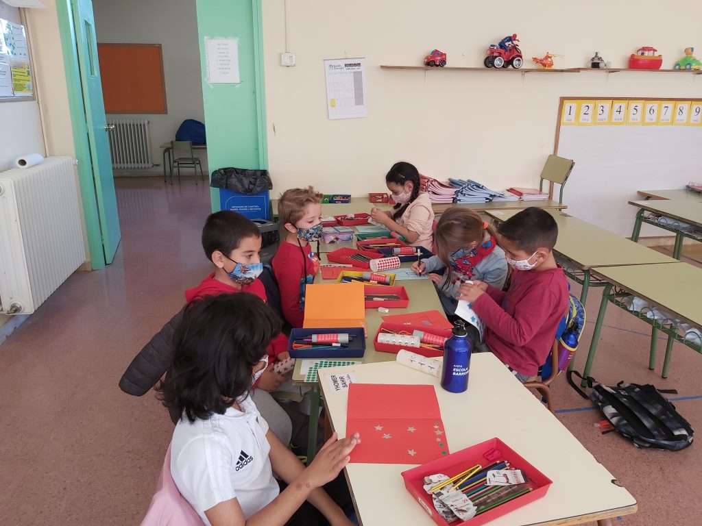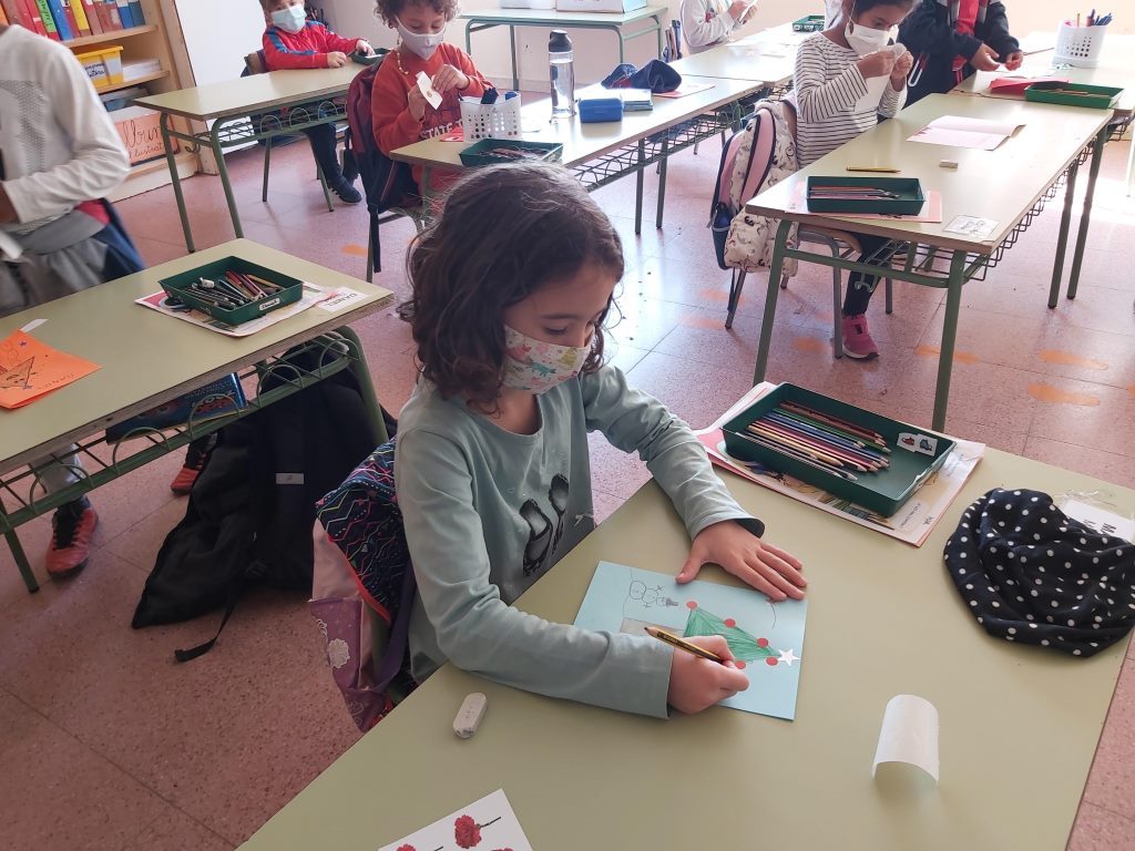 A primer fem petits tallers amb els grups bombolla. Avui hem començat aquesta iniciativa aprofitant un tema de llengua catalana on es proposava fer una petita postal de Nadal. Les nostres creacions han estat molt originals i hem passat una bona estona fent aquesta manualitat i aprofundint en l’escriptura de frases típiques nadalenques. Us deixem unes imatges d’aquest taller. Fins aviat!