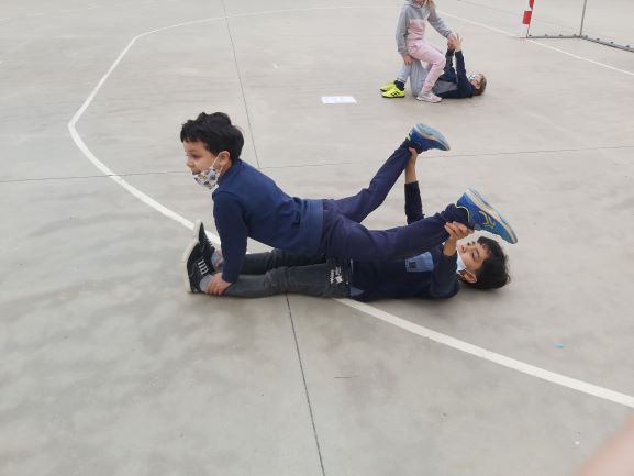 Els grups de 1r, a la classe d’educació física, treballem diferents activitats i jocs al llarg del trimestre, i ens encanta baixar a la pista a fer aquestes sessions. El dia d’avui hem estat treballant l’equilibri i hem jugat a ser equilibristes fent unes figures en parelles que ens han proposat les mestres. Amb aquesta activitat pretenem desenvolupar l’equilibri corporal millorant la coordinació d’accions i moviments alhora que mantenim posicions determinades en situacions estàtiques. D’aquesta manera anem adquirint confiança en postures d’equilibri i assimilem el concepte d’equilibri. Us deixem unes imatges per tal que veieu quines figures tan boniques hem fet. Fins aviat!