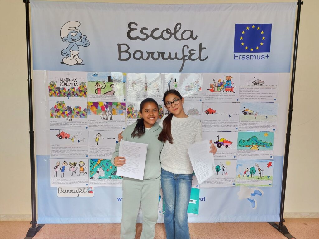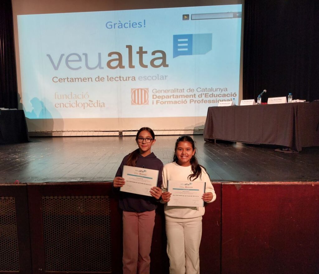 Les nostres representants de l’escola Barrufet han estat la Gala i l’Alondra, alumnes de 6è. Totes dues han estat seleccionades a l’escola arran del treball setmanal de lectura en veu alta que es fa a l’aula, un espai on participa tot l’alumnat i del qual elles en van resultar les finalistes.