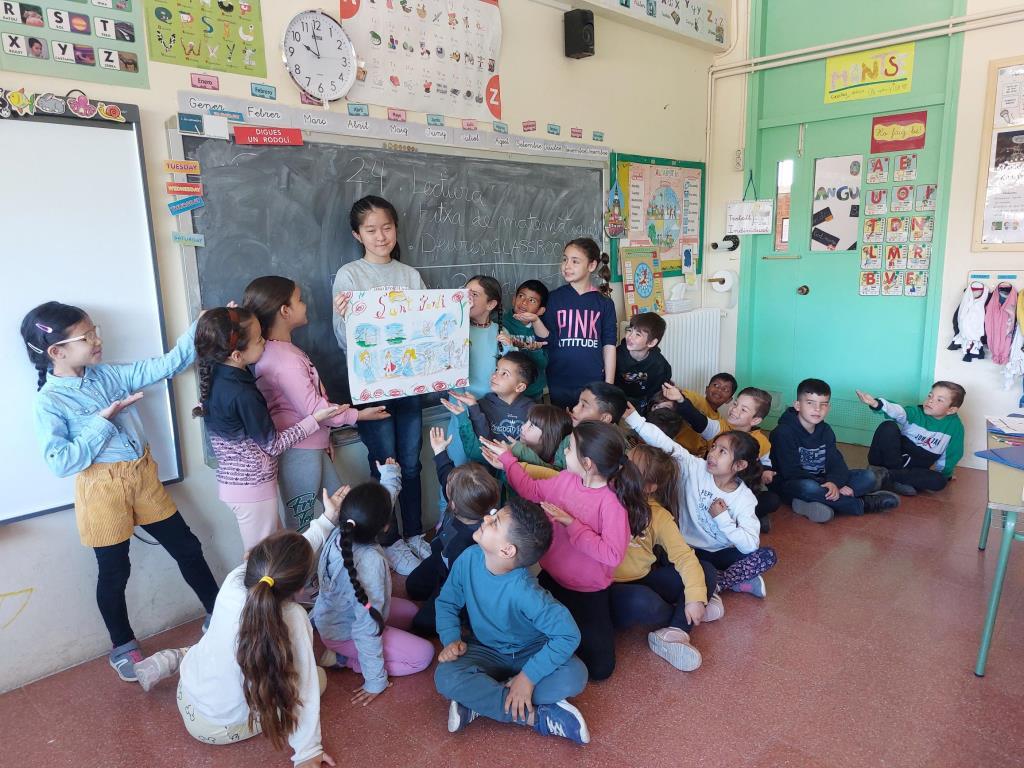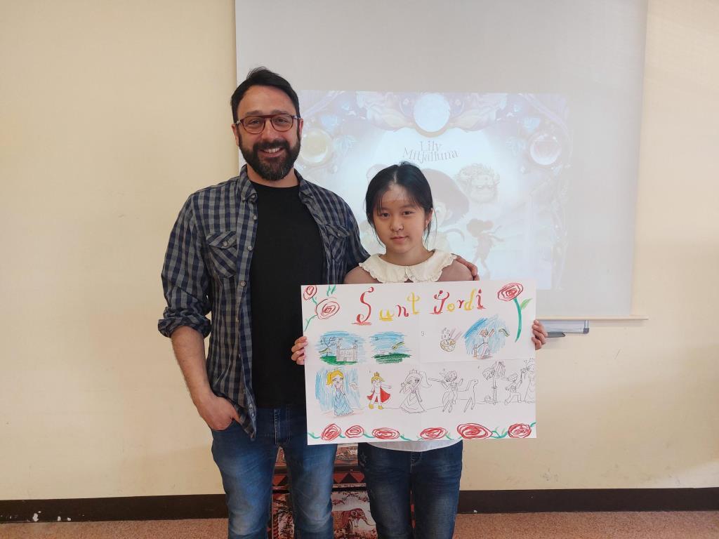 SÓC LA BEIRU HUANG, ALUMNA DE 6èB DE L’ESCOLA BARRUFET. A L’AULA DE REFORÇ I ACOLLIDA HE PREPARAT UN CARTELL DE LA LLEGENDA DE SANT JORDI PER ELS NENS I NENES DE LA CLASSE DE PRIMER DE PRIMÀRIA. ELS HI EXPLICARÀN EL CONTE DE SANT JORDI AMB EL MEU CARTELL. ESTIC MOLT CONTENTA.
