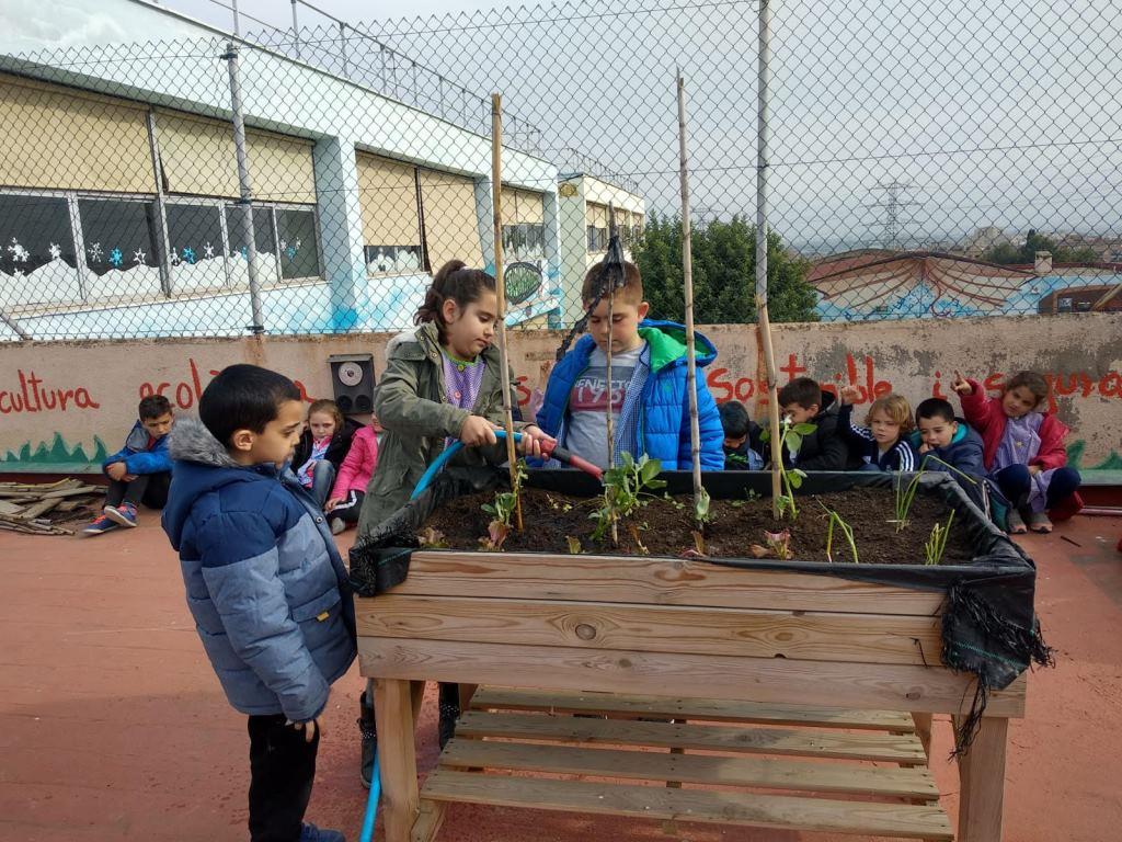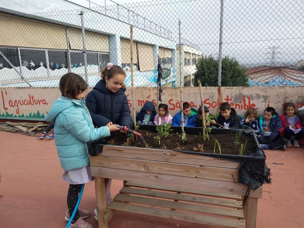 L’alumnat de cicle inicial anem a regar el nostre hort puntualment. Intentem pujar a l’hort un cop per setmana, sempre que les nostres feines de l’aula ens ho permetin. Com sabeu, entre d’altres, hem plantat enciams i els enciams necessiten molta aigua. Però recordem que no hem de regar en excés perquè si reguem excessivament les plantes podem arrossegar les sals que tenen les seves fulles i provocar aquesta temuda malaltia anomenada clorosi. Sense aigua, les fulles d’enciam s’estoven.
