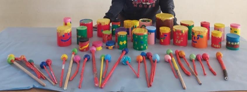 A més del conte musicalitzat, hem fet altres activitats relacionades amb la música: jocs i activitats diverses relacionades amb LA VEU i també hem realitzat instruments musicals amb material reciclat. Al cicle inicial i mitjà la nostra elecció ha estat fer TIMBALS AFRICANS de diferents models.