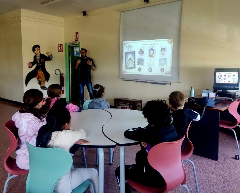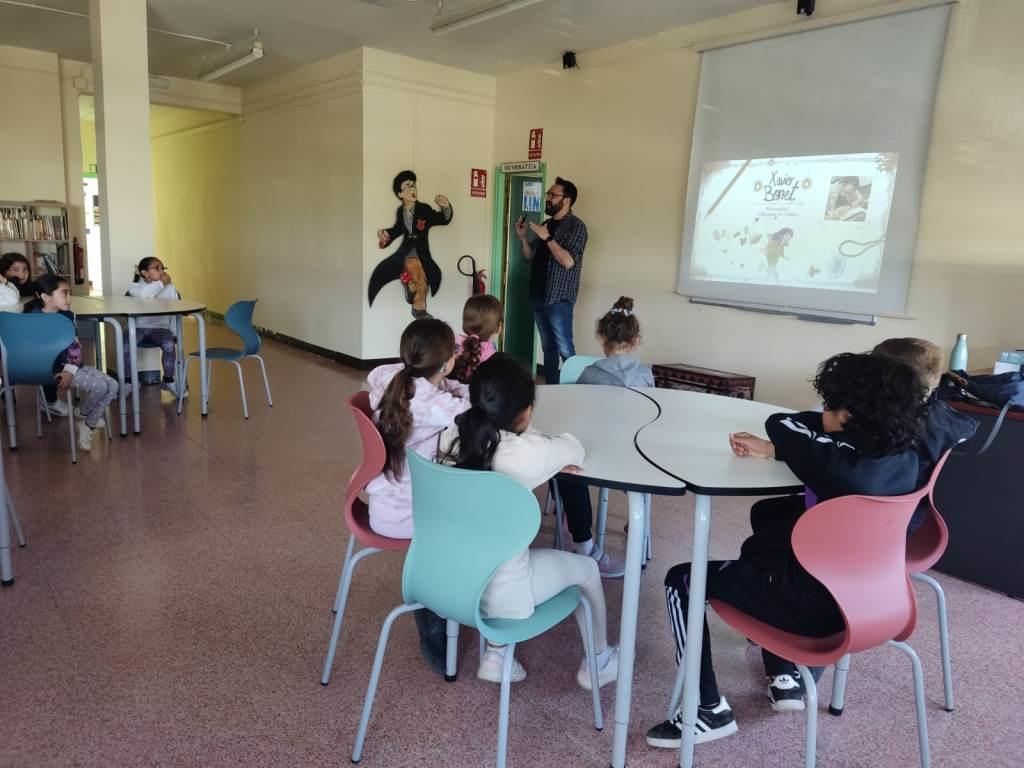 Avui, l’alumnat de 3r i 4t ha rebut la visita d’en Xavier Bonet, veí de Sant Boi, il·lustrador i dibuixant de còmics. Ens ha presentat els últims dos còmics que ha il·lustrat : Lily Mitjalluna 1 “Les joies màgiques” i  Lily Mitjalluna 2 “ El gremi de les bruixes” . També ens ha regalat i ens ha signat alguns exemplars del llibre que ha il·lustrat “El conte de la lluna” escrit per Anna Morató i García.