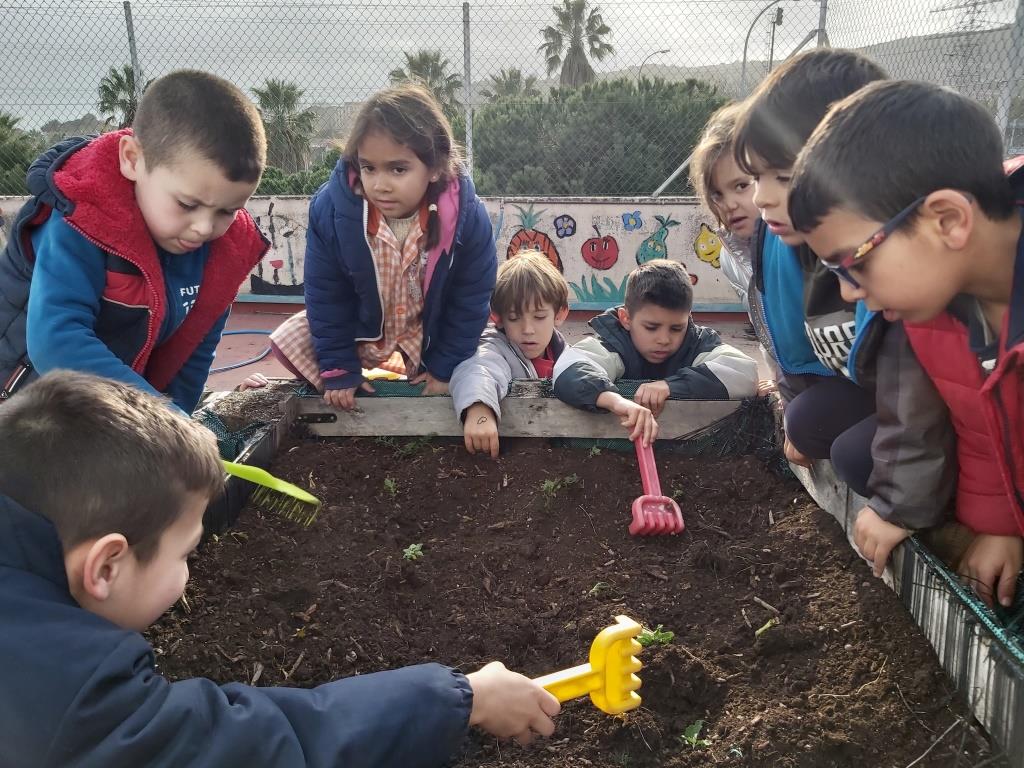 Els nens i nenes de cicle inicial hem passat una tarda a l’hort de la nostra escola. Hem aprofitat el bon temps per preparar el nostre hort i fer el conreu de productes de temporada com faves, cebes i enciams. Amb els recursos que tenim i una mica d’ajuda per part de les mestres que ens han acompanyat, hem fet una bona feina a l’hort, potenciant un treball col·laboratiu i cooperatiu entre tots i totes i compartint tasques de plantar, regar, netejar males herbes, etc.. A més a més, nosaltres mateixos hem anat adquirint una responsabilitat de cura del nostre hort per tal que la collita plantada creixi amb molt bona qualitat. De mica en mica anirem cuidant el nostre hort i esperem que molt aviat puguem fer un tastet a l’aula de tot el que hem plantat. Us deixem unes imatges de la nostra tarda d’hort esperant que us agradi tant com a nosaltres. Fins molt aviat!