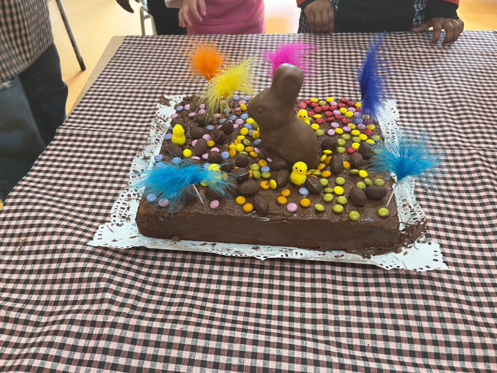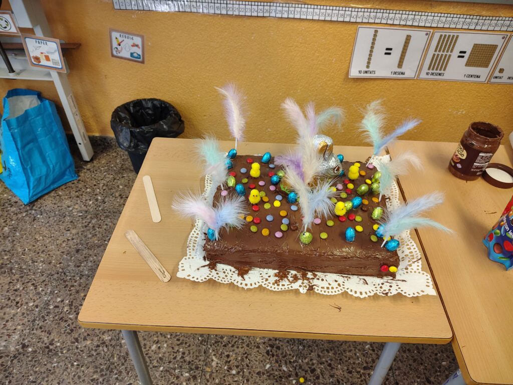 Durant el matí hem fet activitats relacionades amb la Pasqua, on hem après coses noves i hem treballat en equip. Després, entre tots i totes, hem decorat una mona de Pasqua amb plomes, ous de xocolata i altres detalls ben bonics. Ens ha quedat preciosa!