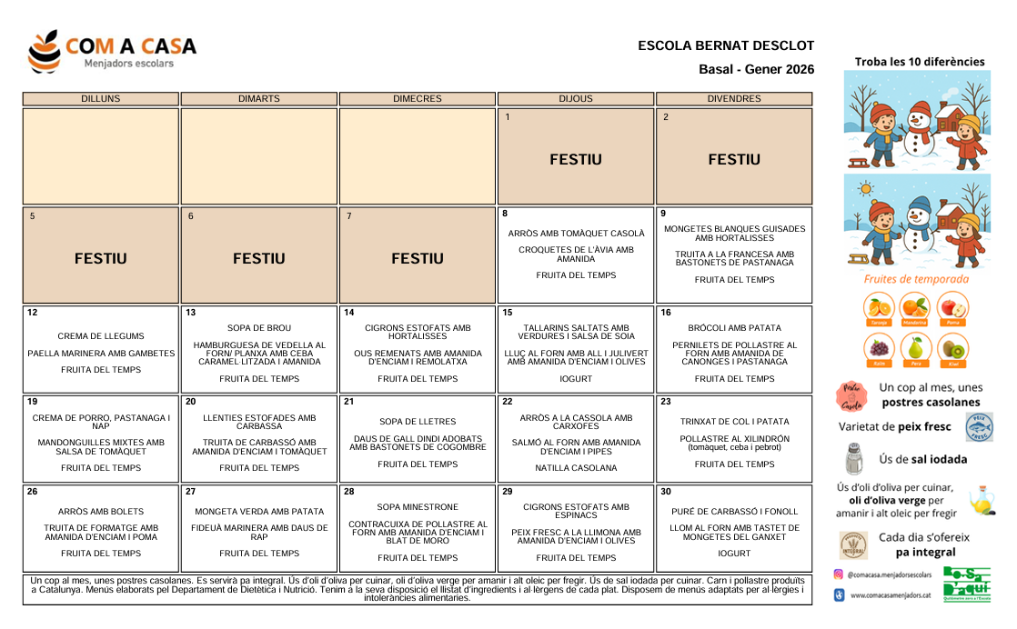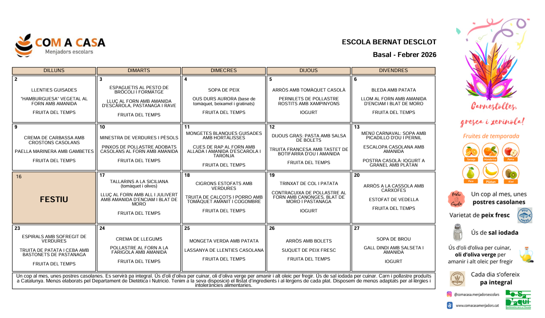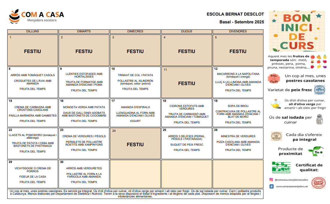 Menjador escolar 2025-2026