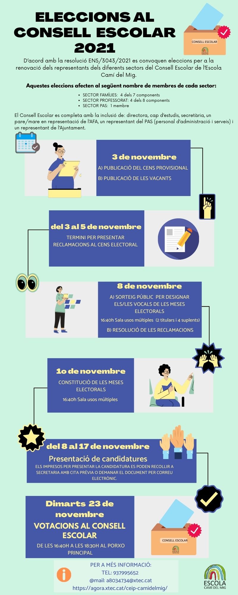 Al següent enllaç trobareu tota la informació de les ELECCIONS AL CONSELL ESCOLAR 2021
