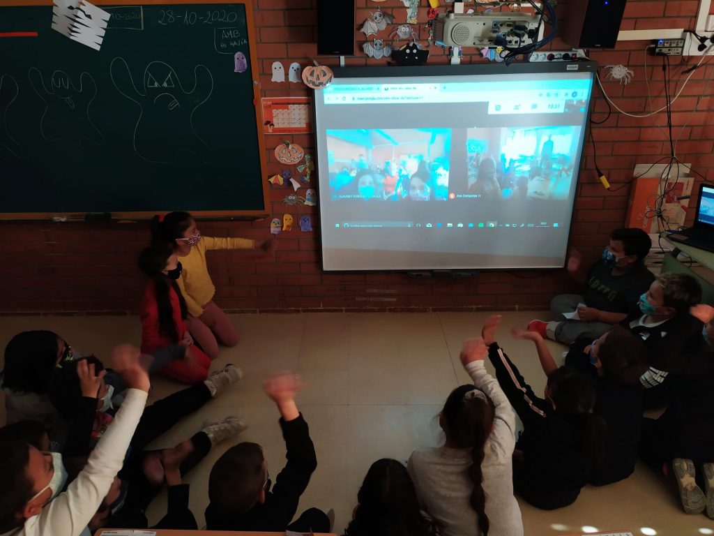 El passat dijous 29 vam celebrar la castanyada amb diverses activitats. També vam fer una videconferència al Google Meet amb la classe de 6è. Va ser molt divertit! A la tarda vam berenar xocolata amb pa de pessic i vam estar ballant i cantant, tot disfressats. Va ser un dia molt terrorífic!