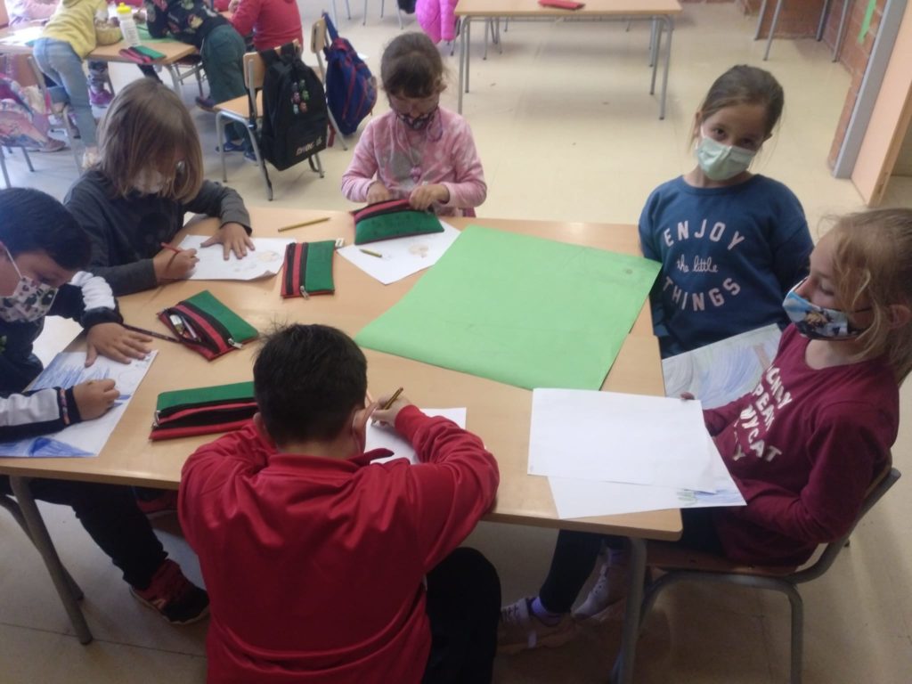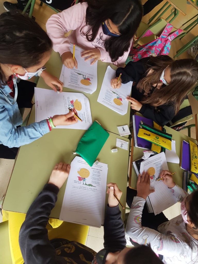Avui hem començat a crear el nostre propi conte de Sant Jordi. Primer hem fet una pluja d’idees per pensar la història, després les hem escrit i per últim a plàstica hem creat el decorat pel nostre conte. Ens ha quedat xulíssim i hem col.laborat tots i totes.
