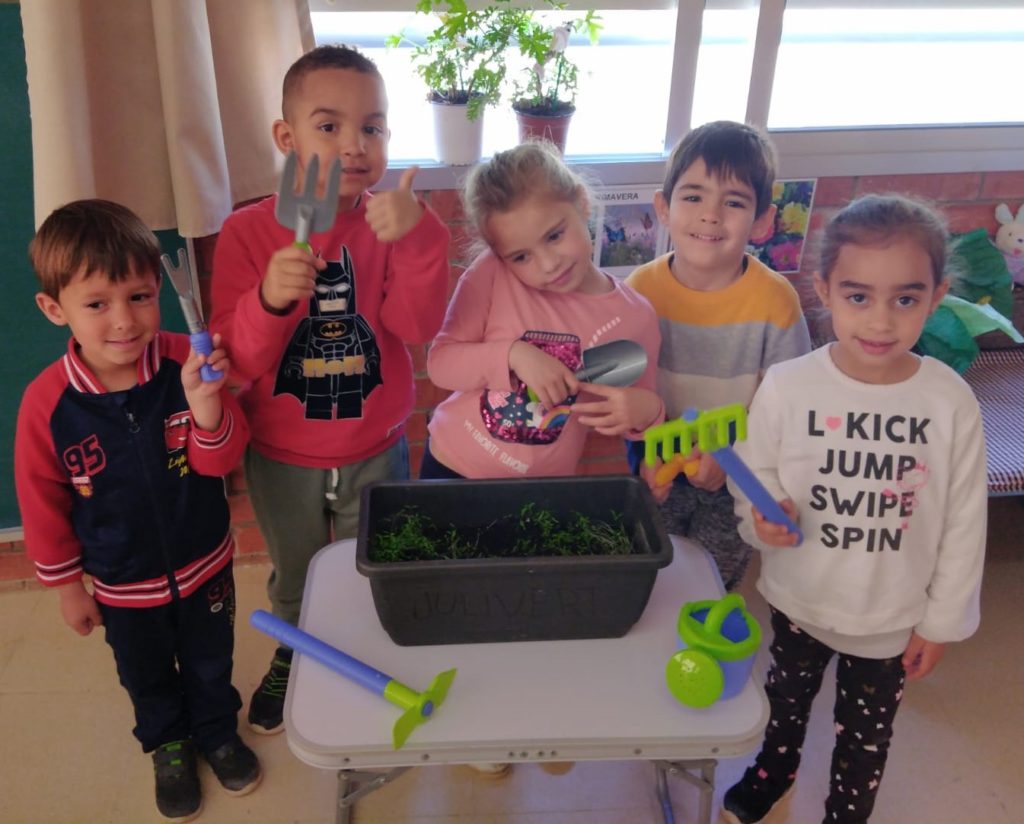 La Vella Quaresma ja fa dies que va marxar, deixant-nos com a regal d’acomiadament un kit de jardineria i llavors de julivert. Amb gran sorpresa, vam començar a tafanejar les eines que portava: pales, rastells, regadora, …Entre tots/es vam posar terra al test i a sobre les llavors ben escampades. Desprès les vam tapar altre