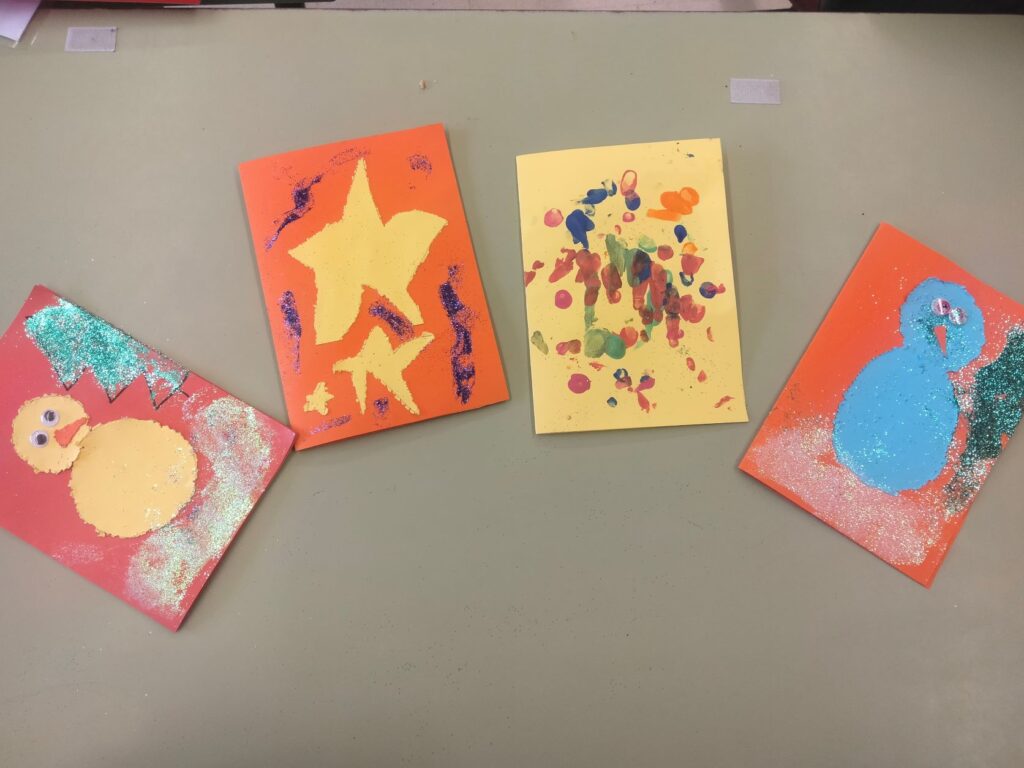 HOLA, ALGUNS ALUMNES DE 1r I 2n JA ESTEM PREPARANT LES NADALES QUE ENVIAREM ALS AVIS I ÀVIES DE LES RESIDÈNCIES. LES ESTEM FENT AMB TEMPS, PER NO HAVER DE CÓRRER AL FINAL. LES HEM FET DE MANERES DIFERENTS: PUNXANT I UTILITZANT PINTURES DE COLORS. DESITGEM QUE ELS AGRADI!!