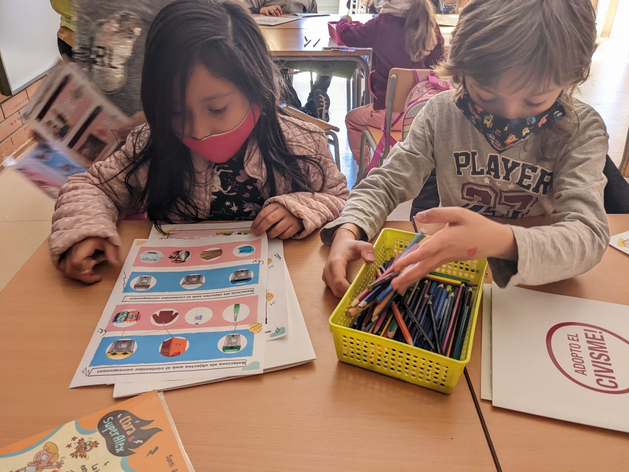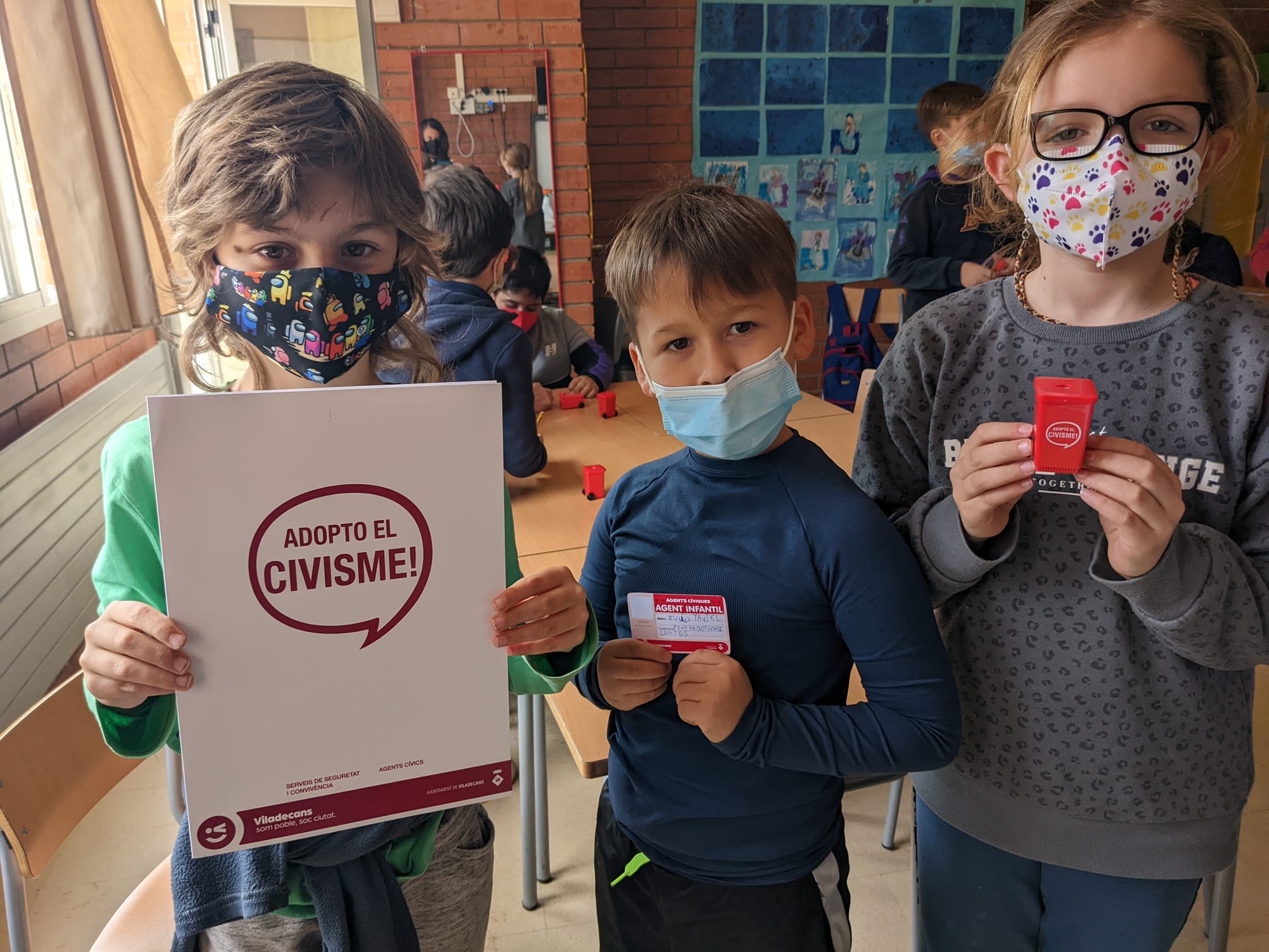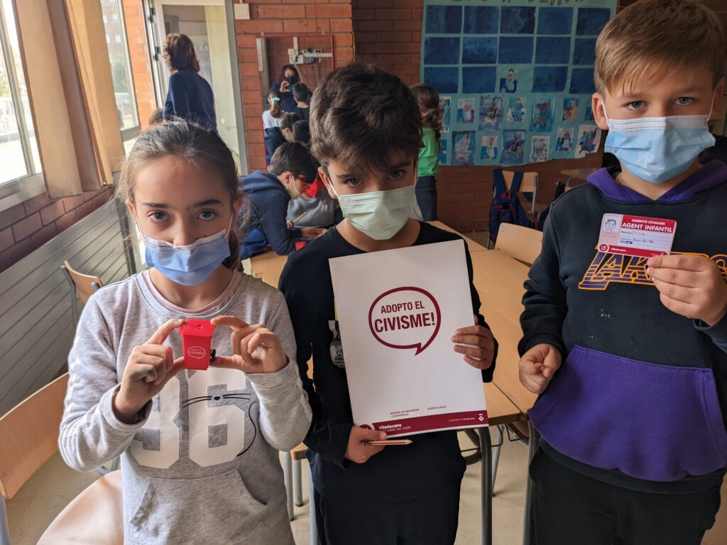Quan han marxat ens han deixat un carnet de petits agents cívics i un obsequi d’una maquineta-contenidor per fer punta.