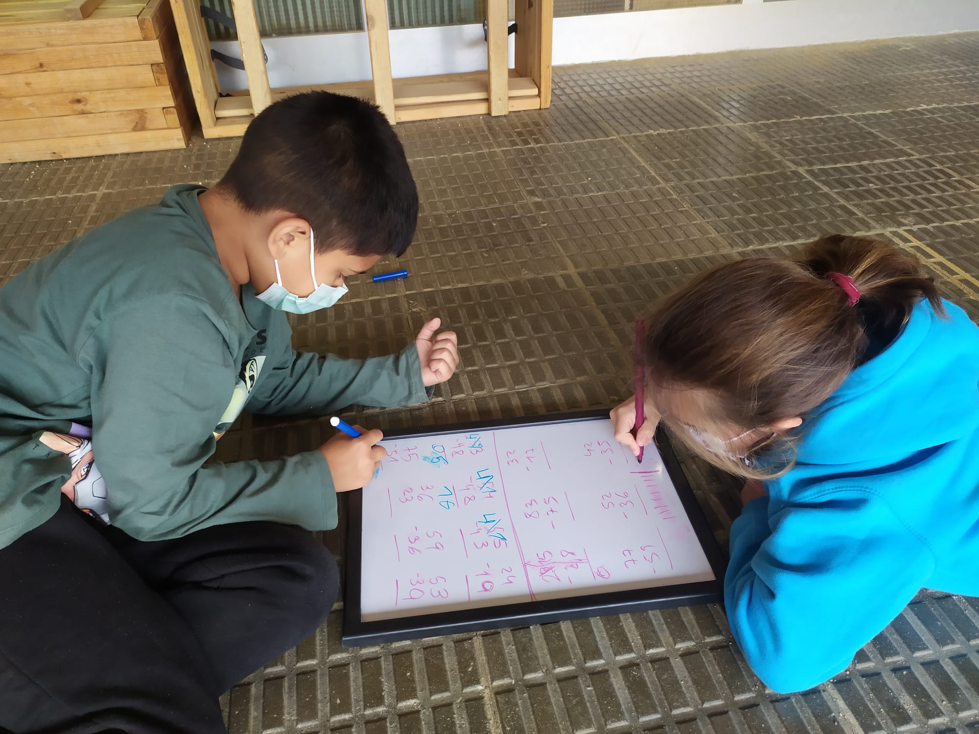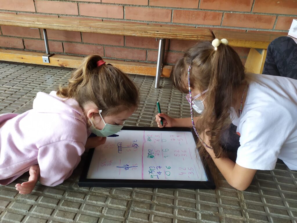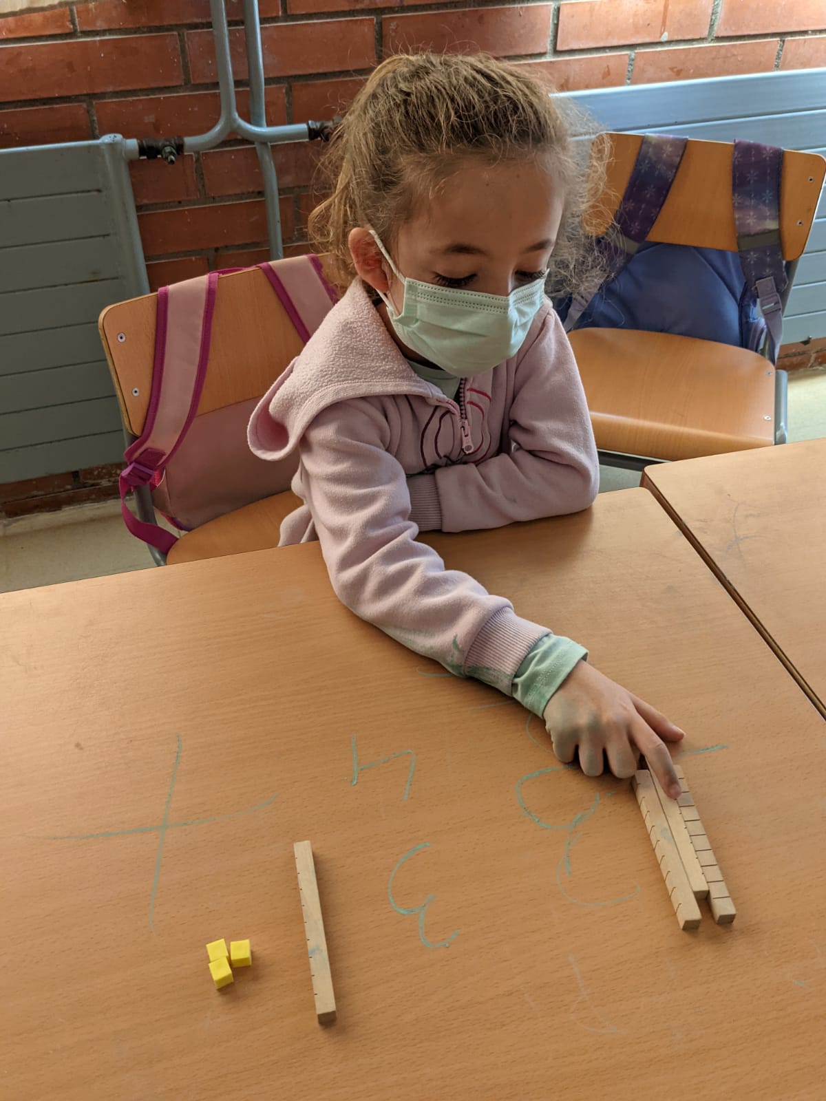 A  segon hem après a fer restes portant-ne. Primer hem après a distingir quines són les restes portant-ne i després amb material manipulatiu, amb els reglets, hem vist com podem fer més gran una unitat, demanant ajut  a la desena… Així és molt més fàcil investigar com es fa aquesta operació matemàtica (resta).