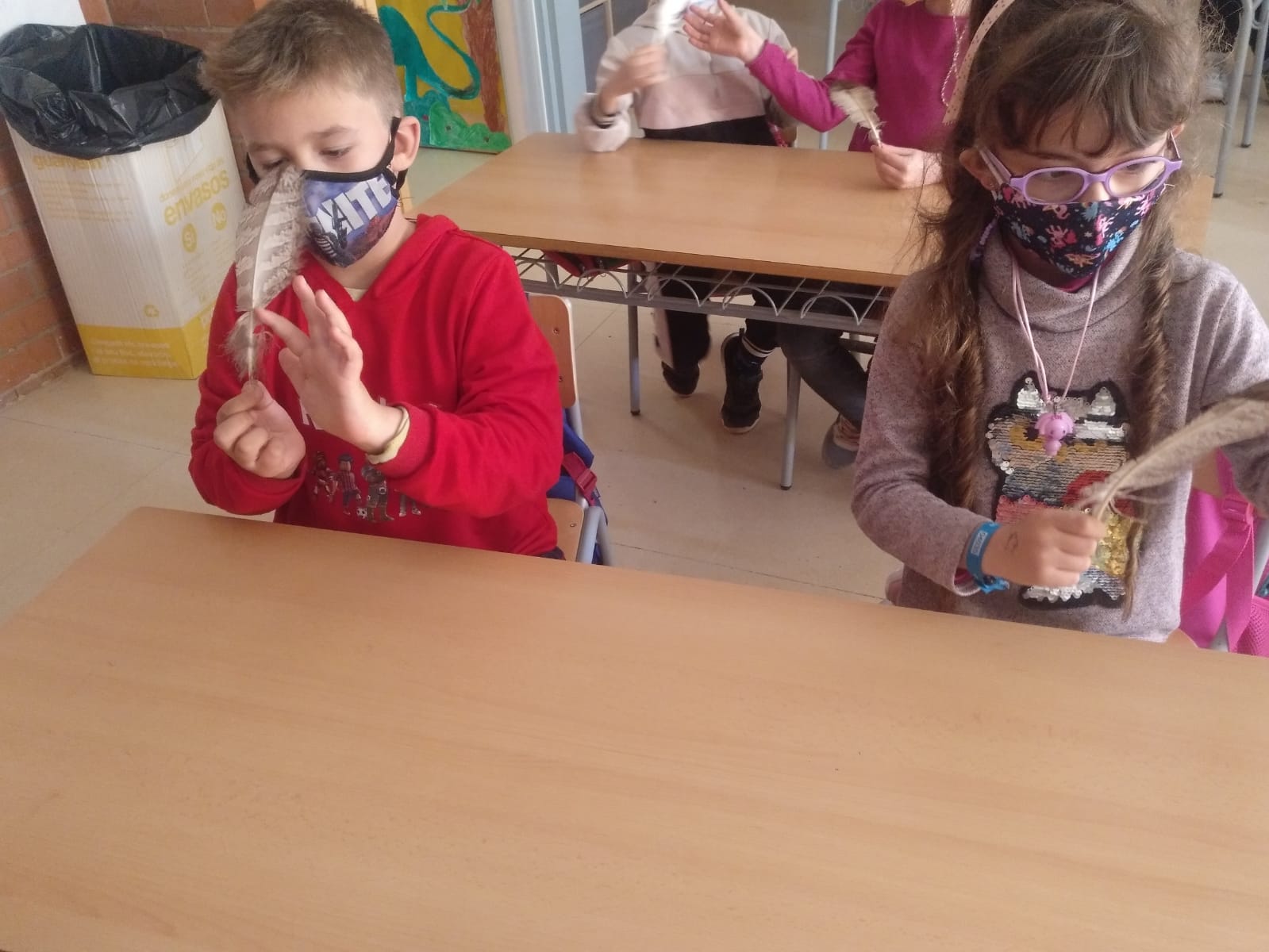 El grup de nens i nenes de primer hem rebut la visita d’un monitor que ens ha explicat moltes coses dels ocells que habiten a Viladecans, sobretot a l’estany de la Murtra. Hem fet un taller i hem tocat diferents tipus de plomes. Ha estat una bona experiència!!!