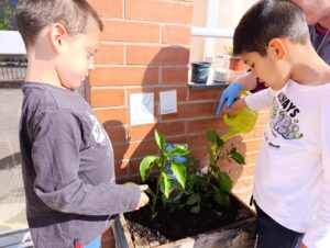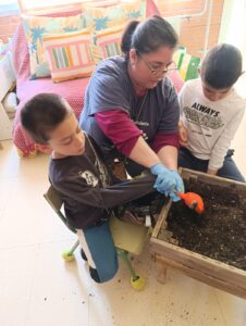 AVUI ALGUNS DELS INFANTS QUE VENEN A TREBALLAR AL SIEI DE PETITS I PETITES HEM CONTINUAT AMB EL NOSTRE TALLER DE PLANTES.