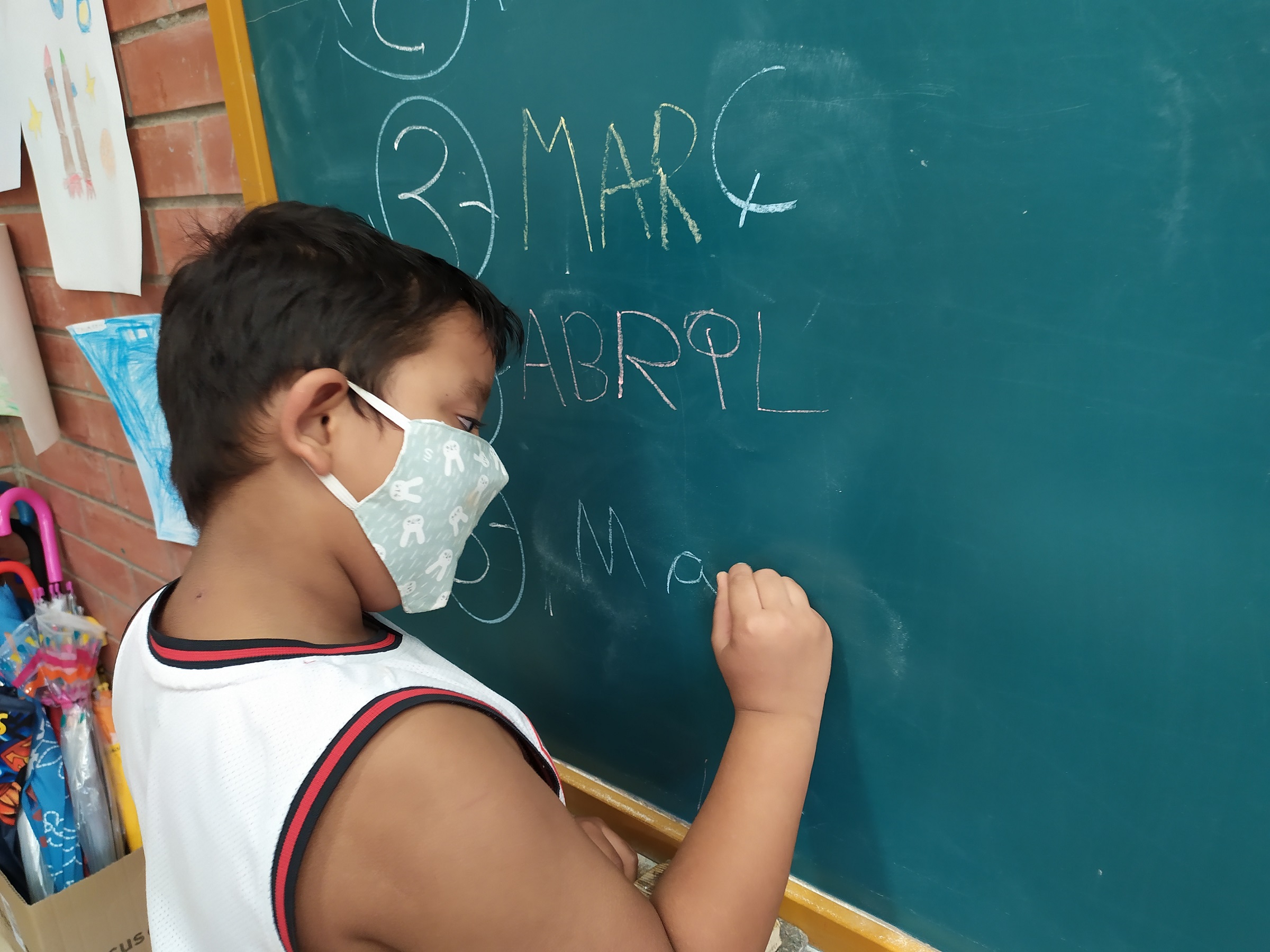 Es tracta que un infant marxi de l’aula mentre que esborrem un dels mesos escrits a la pissarra. En tornar, ha d’endevinar quin mes falta i escriure’l.