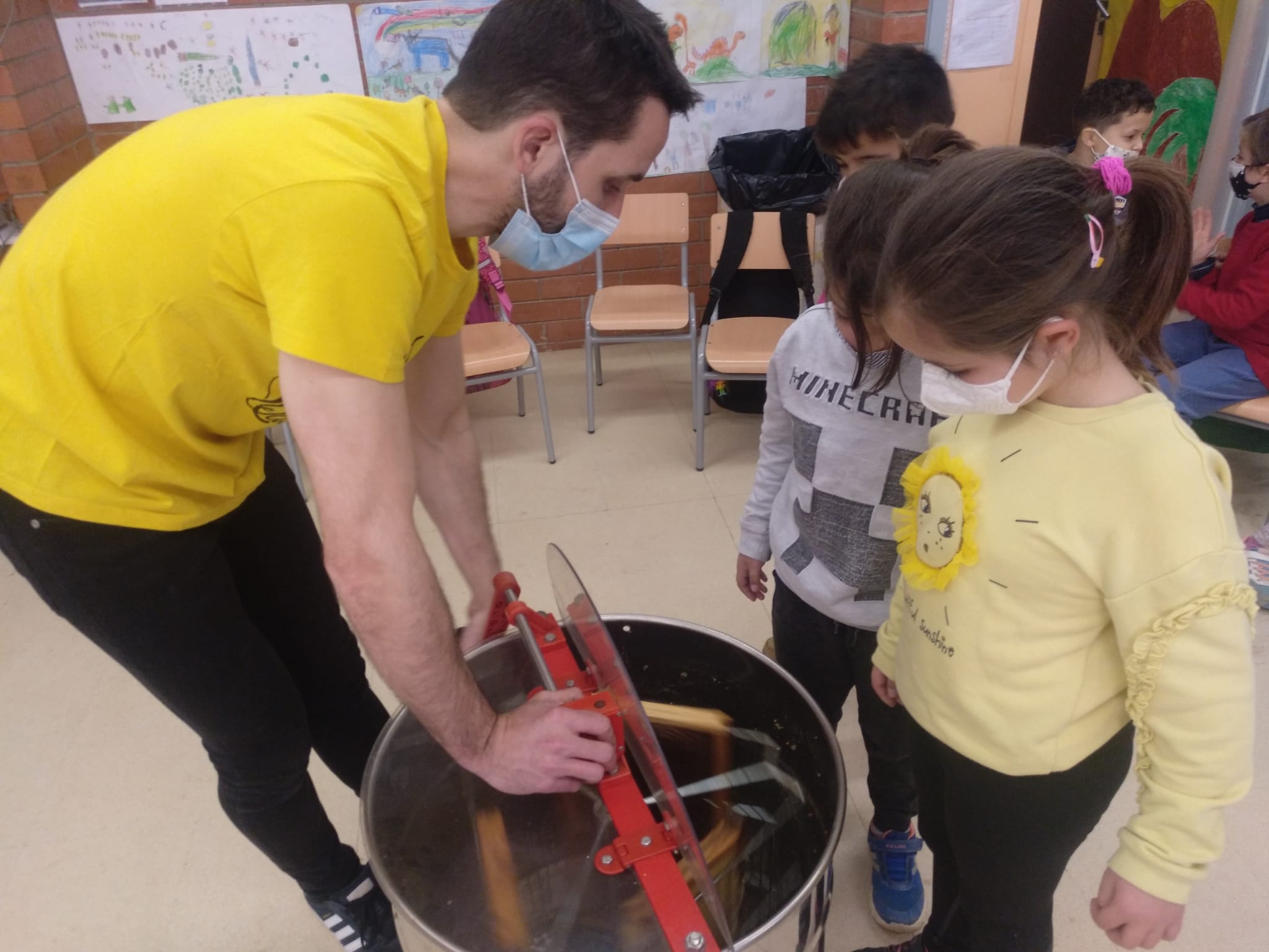 A la classe de primer ha vingut un apicultor a explicar-nos coses sobre les abelles. Hem après a diferenciar-les de les vespes. Hem conegut el tipus d’abelles que hi ha i com s’ho fan per fer la mel.