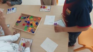 L’activitat consistia a escoltar una paraula, identificar-ne els sons, buscar les lletres i ordenar-les correctament per tal de confegir la paraula.