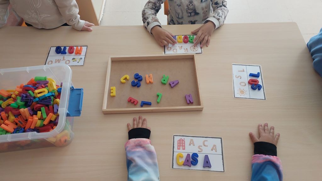 L’activitat consistia a escoltar una paraula, identificar-ne els sons, buscar les lletres i ordenar-les correctament per tal de confegir la paraula.