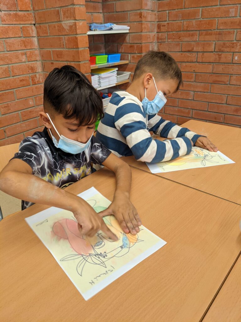 Els infants de segon continuem investigant l’obra de Pablo Picasso relacionada amb la seva biografia. Després d’anar a viure a París, Picasso va canviar el seu estat d’ànim i va començar a pintar retrats femenins i personatges del circ en tons pastel; és l’anomenada Època Rosa.
