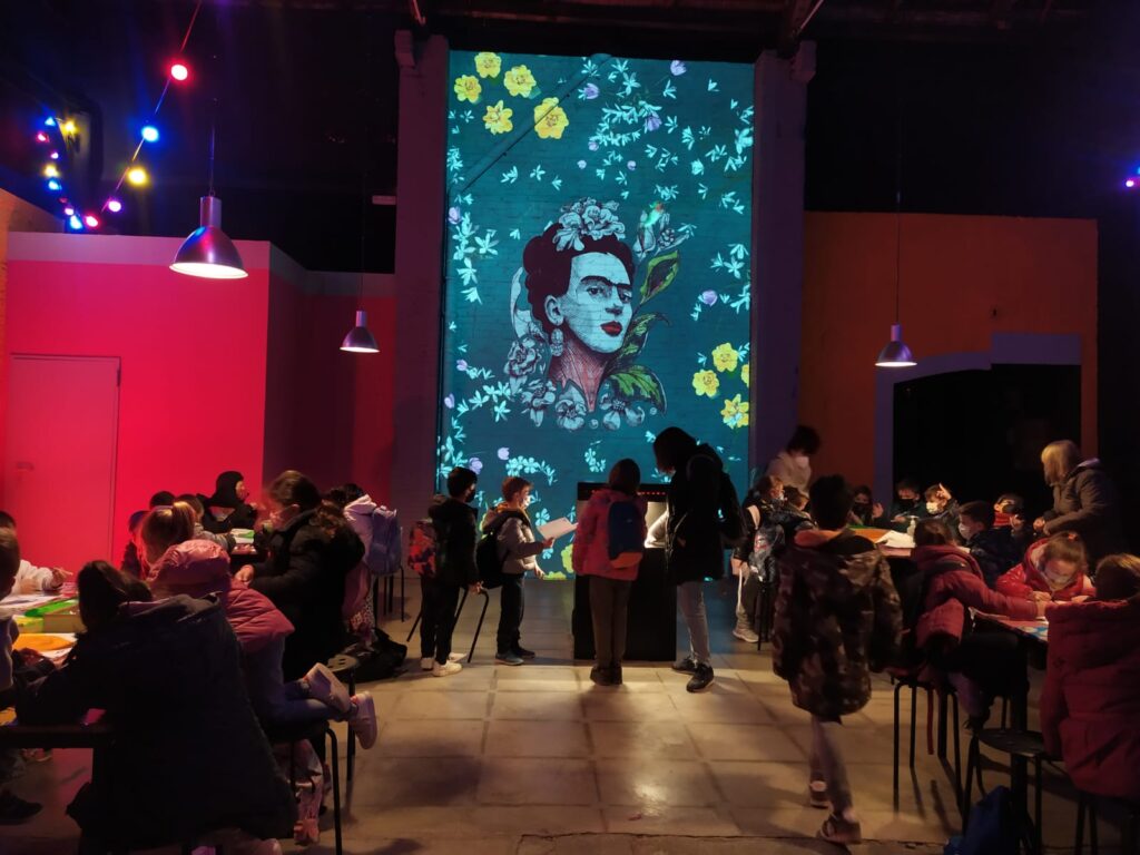 Primer hem fet una passejada pel museu, hem pintat uns dibuixos sobre Frida per després posar-los a una màquina que els projectaven a la paret. L’última parada ha estat fer una volta digital per la vida de Frida a través d’unes ulleres de realitat virtual.